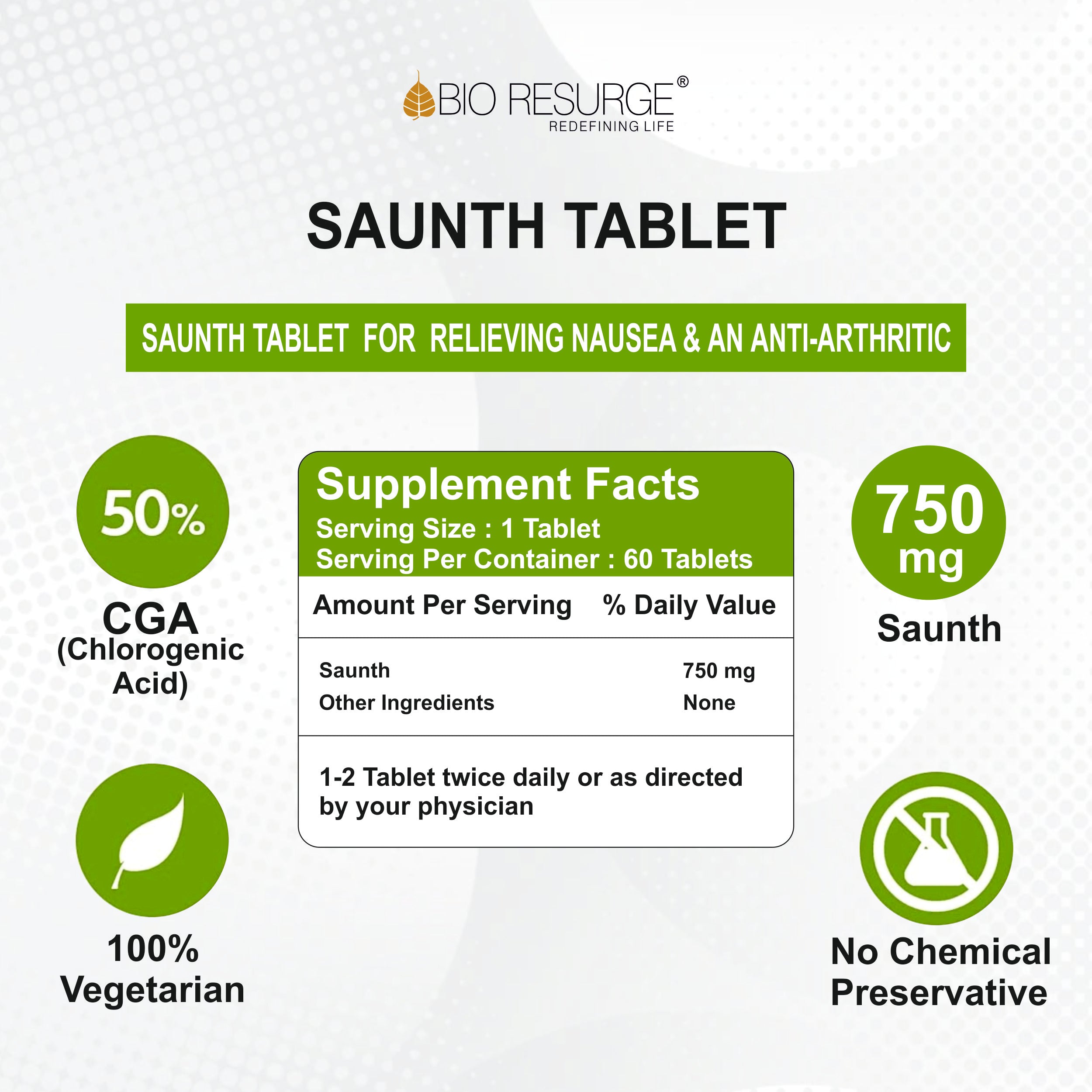 Bio Resurge Saunth Tabs. - 750mg (60 Tabs.)
