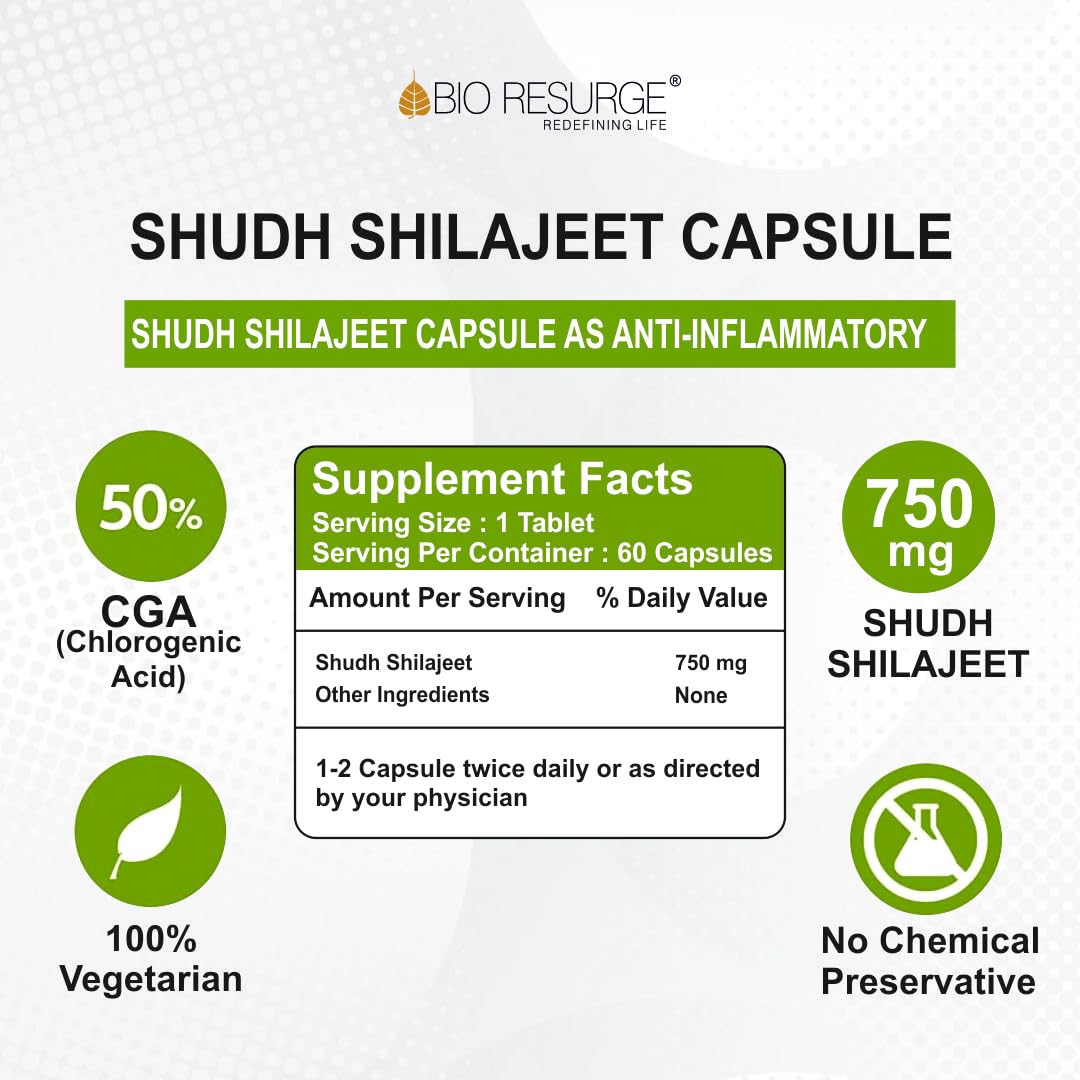 Bio Resurge Shilajit Capsule for Increase Stamina and vitality support for men | shilajeet capsules | approved by ministry of Ayush | 400 mg (60 tablets)