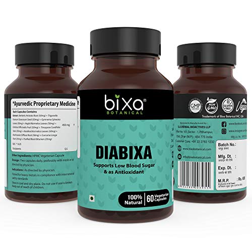 Bixa Botanical Diabixa Capsules, Gymnema Herb Extract |Antioxidant Supplements - 60 Veg Capsules (450mg) Pack of 1