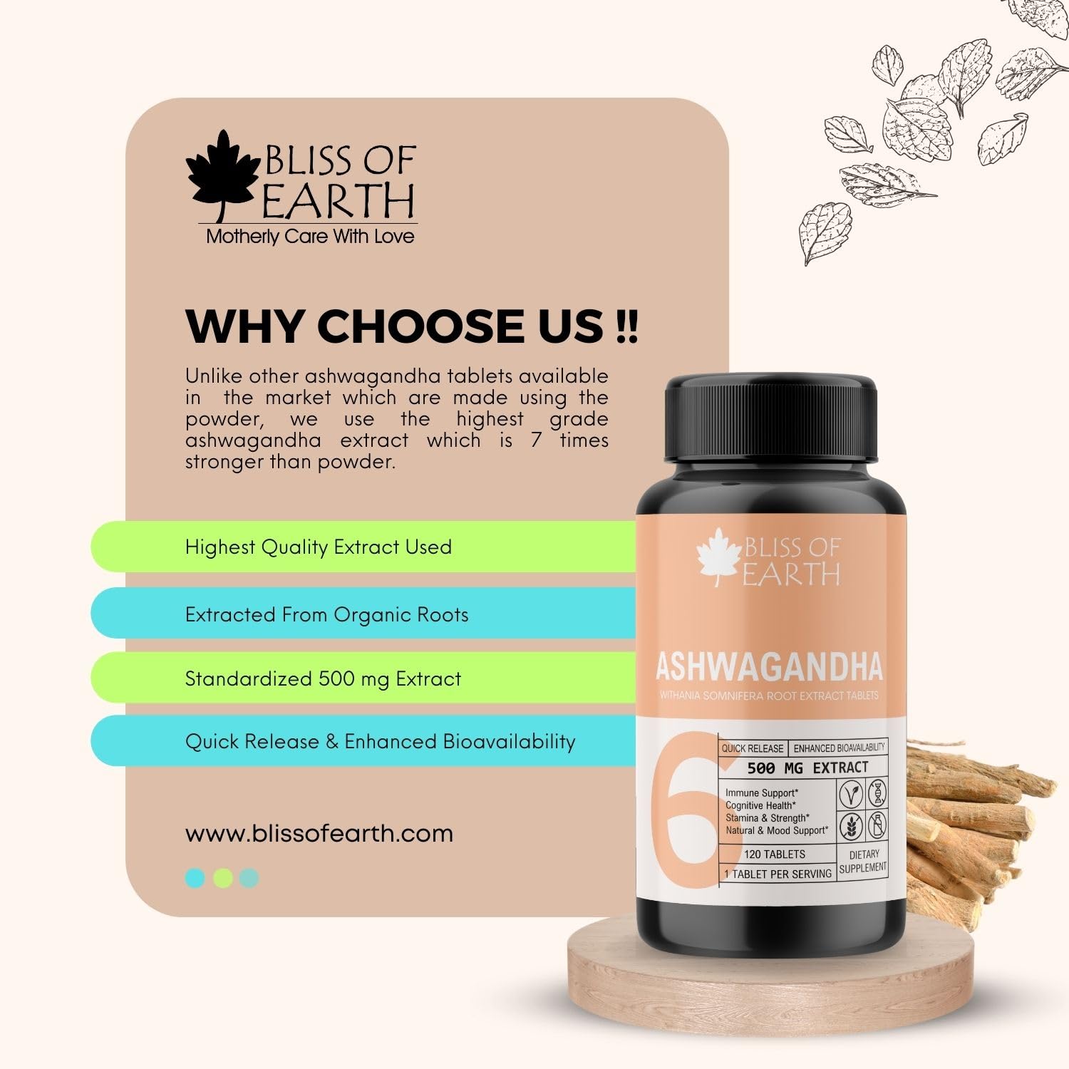 Unlock the power of nature with Bliss of Earth Turmeric Curcumin 500mg tablets a natural supplement designed to promote joint health and support a healthy inflammatory response. These tablets feature a potent dose of curcumin the active compound found in turmeric renowned for its potential health benefits. Experience the quick release and enhanced bioavailability for maximum effectiveness. & Bliss of Earth Ashwagandha scientifically known as Withania somnifera is a renowned adaptogenic herb with a long history of use in traditional Ayurvedic medicine. These Ashwagandha tablets offer a convenient and standardized way to incorporate the numerous potential health benefits of this herbal remedy into your daily routine.