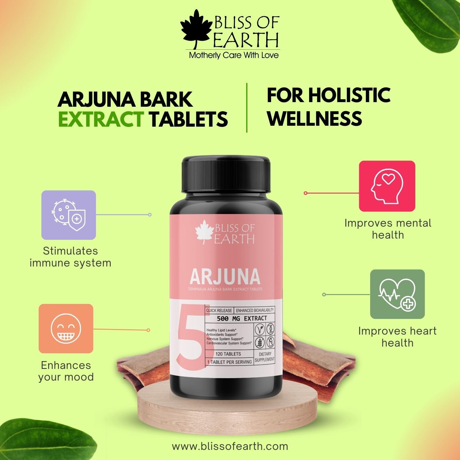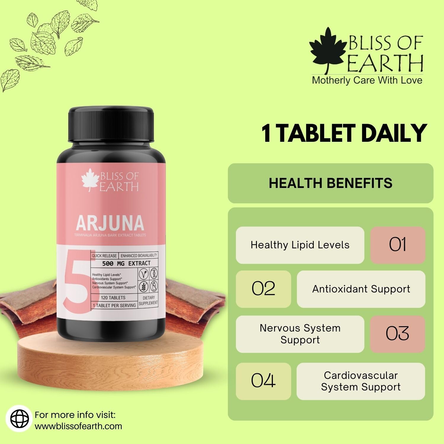 Experience the natural goodness of Moringa Oleifera with Bliss of Earth Moringa Tablets. Moringa often referred to as the "Miracle Tree" or "Drumstick Tree" has been cherished for centuries for its exceptional nutritional value and numerous health benefits. These 500mg Moringa tablets offer a convenient and potent way to enrich your daily wellness routine. & Bliss of Earth Arjuna scientifically known as Terminalia arjuna is a revered herbal supplement celebrated for its potential cardiovascular benefits. These Arjuna tablets offer a convenient and standardized way to incorporate the natural goodness of this traditional Ayurvedic herb into your daily wellness regimen.