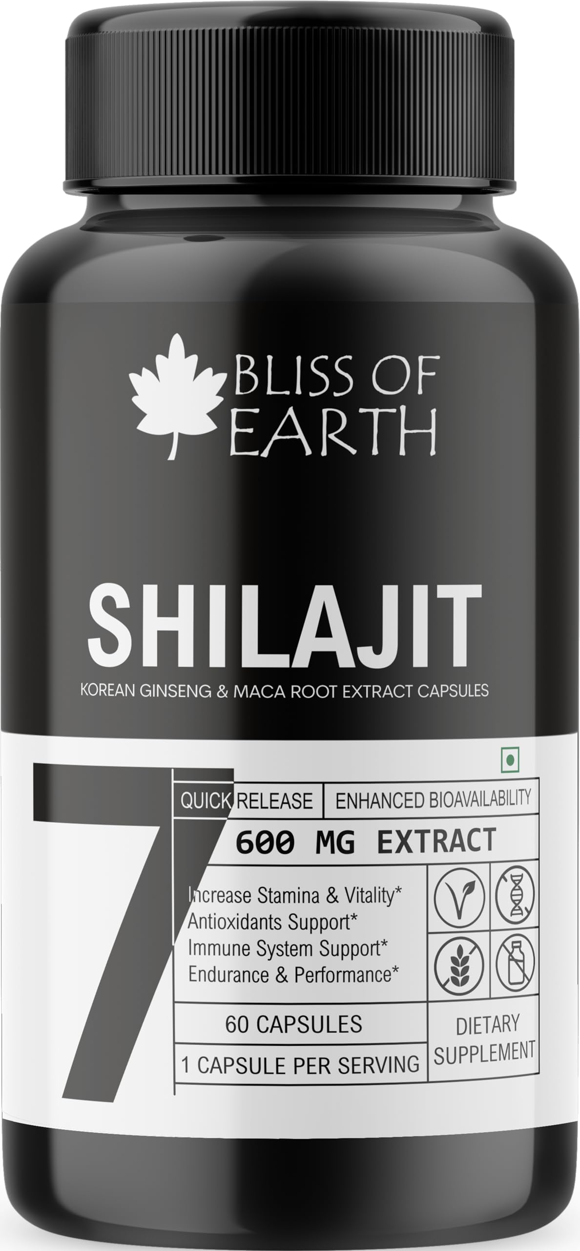 Bliss of Earth Shilajit is a unique high-potency full spectrum holistic extract of pure himalayan shilajit resin blended with pure extract of Korean Red Panax Ginseng Extract & Maca Root Extract . All our tablets & capsules are formulated using the finest quality extracts of organically grown herbs and meticulously processed to maintain purity and high potency.