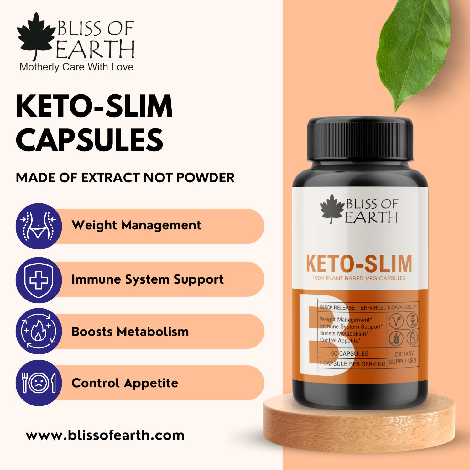Revolutionary Weight Loss Solution Discover the ultimate weight loss capsules to achieve your fitness goals effortlessly. Formulated with natural ingredients these capsules boost metabolism curb cravings and promote fat burning. Say hello to a healthier slimmer you with Bliss of Earth's weight loss capsules. Nature's Secret to Healthier Living Bliss of Earth's weight loss capsules are crafted with premium quality ingredients to support your weight management journey. Experience increased energy levels improved metabolism and reduced appetite leading to sustainable weight loss results. Take the first step towards a fitter more vibrant lifestyle today!