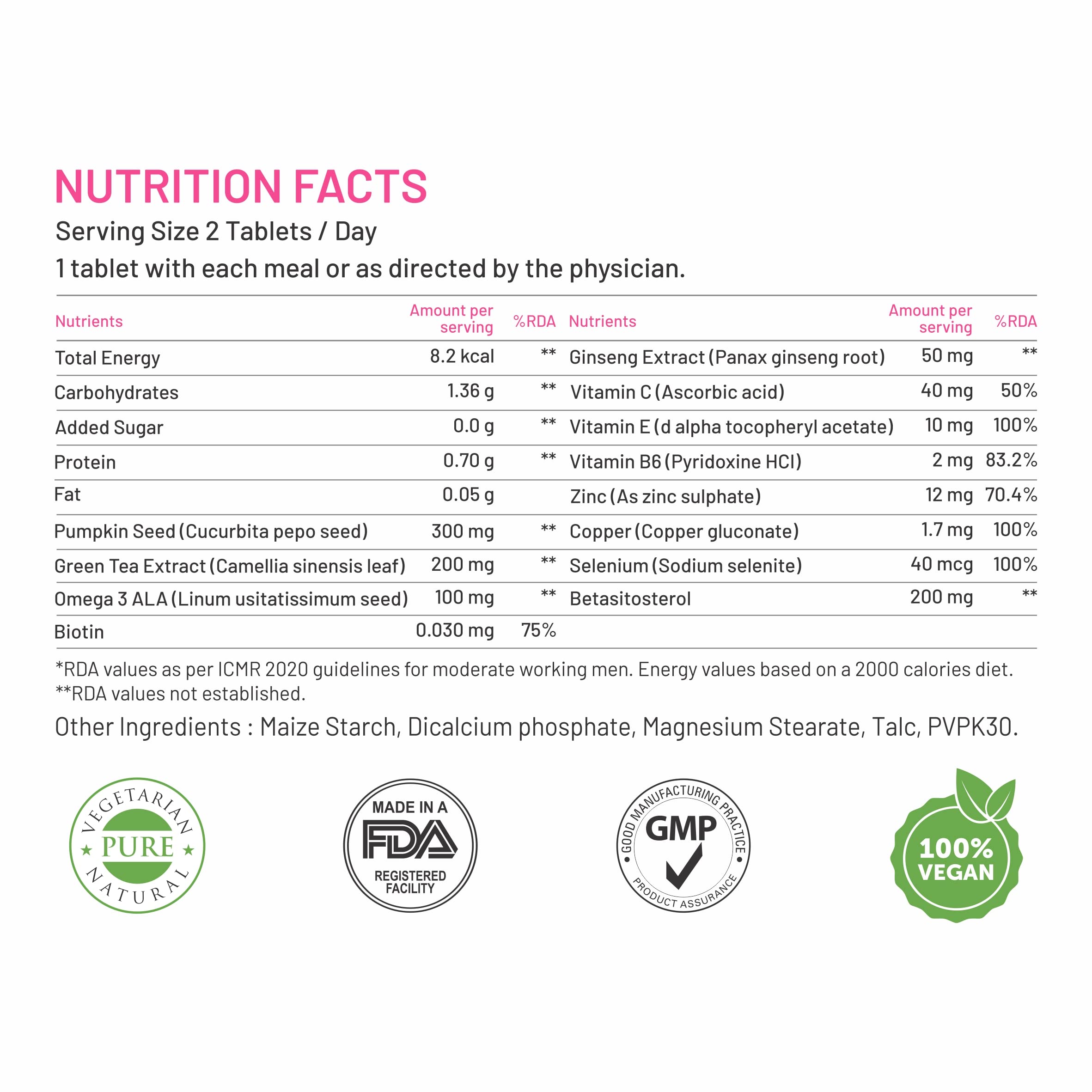Bliss Wellness DHT Blocker with Biotin Pumpkin Seed Green Tea Omega-3 Vitamins C E B6 Zinc Selenium & Beta-Sitosterol Reduces Hair Fall Stimulates Growth & Regrowth 60 Veg Tablets.