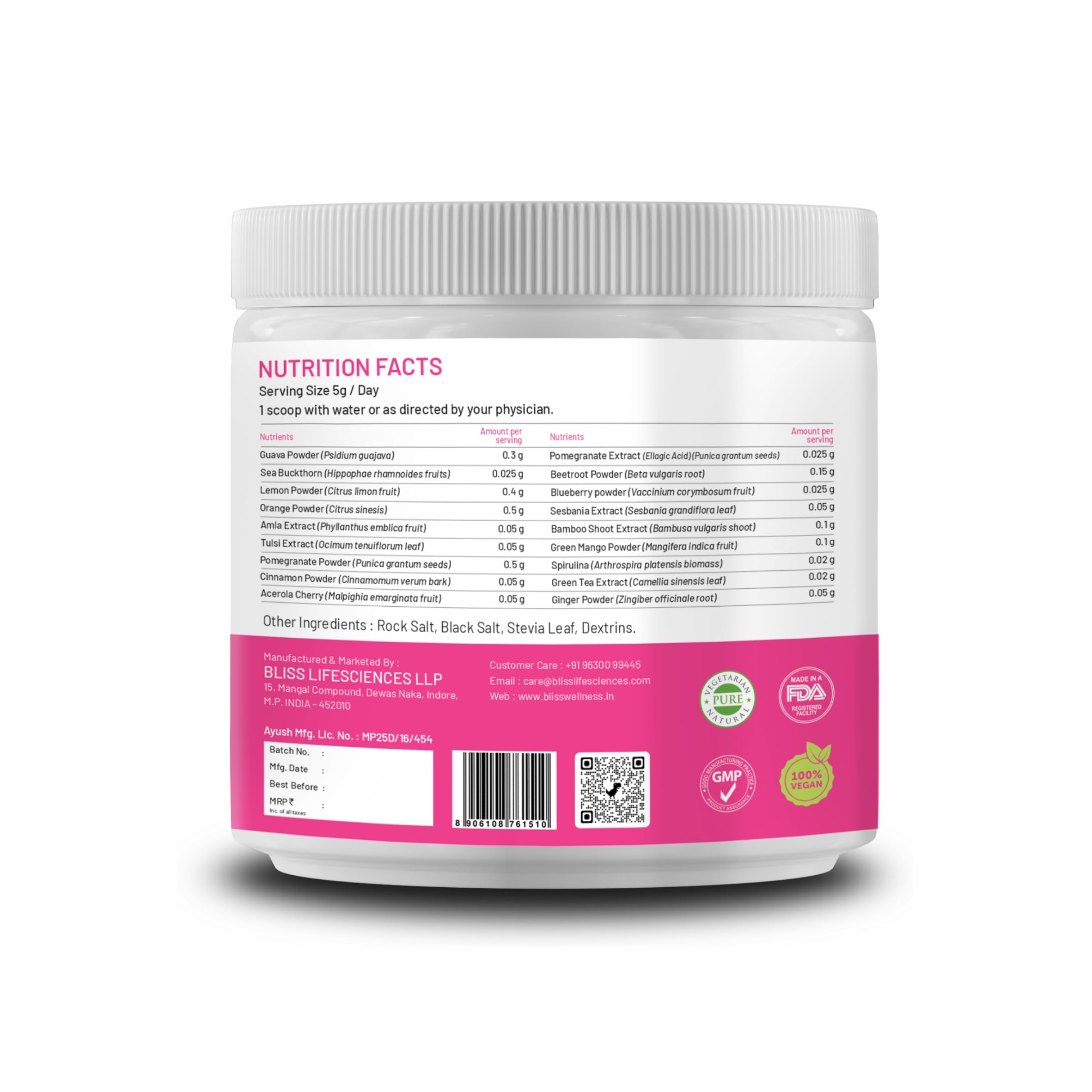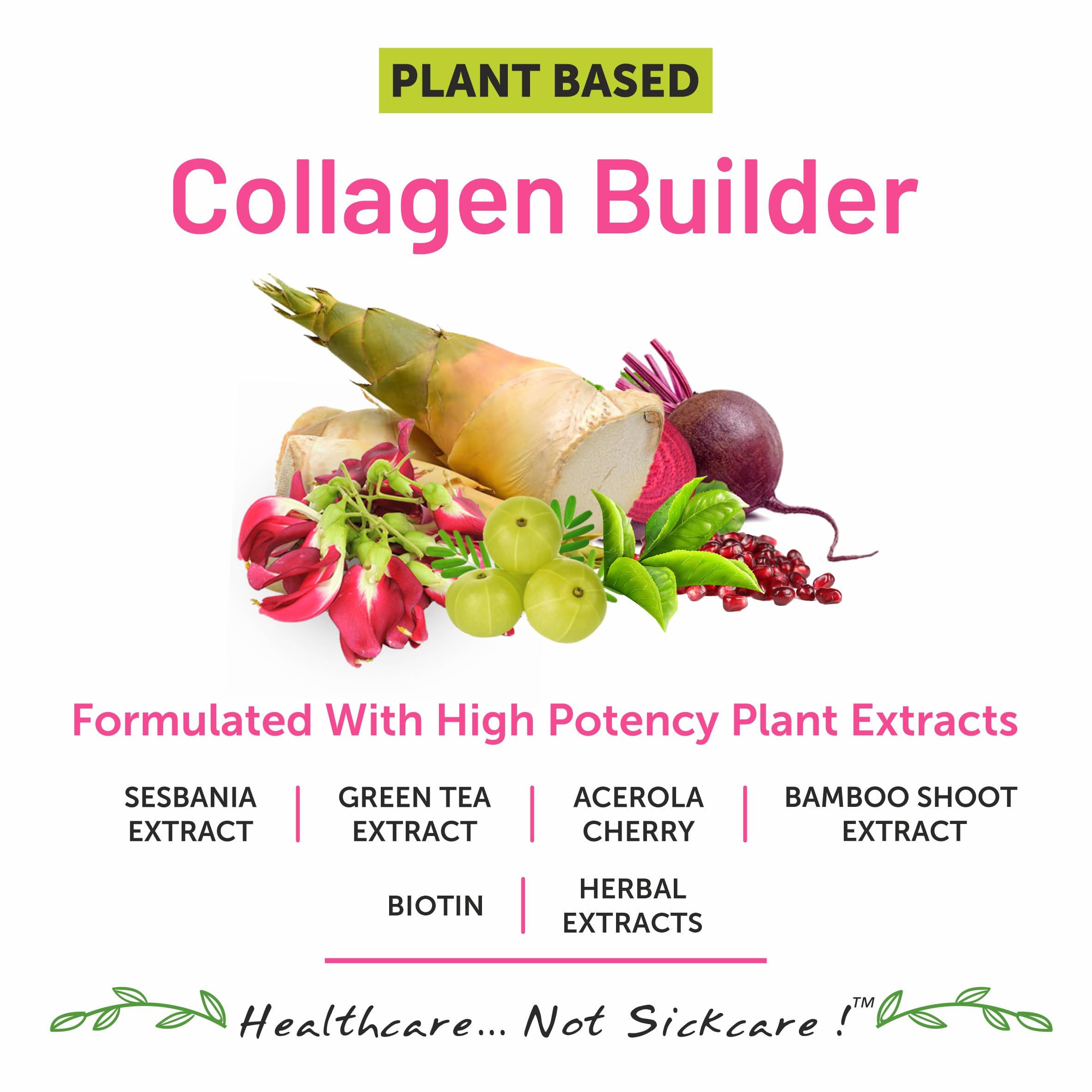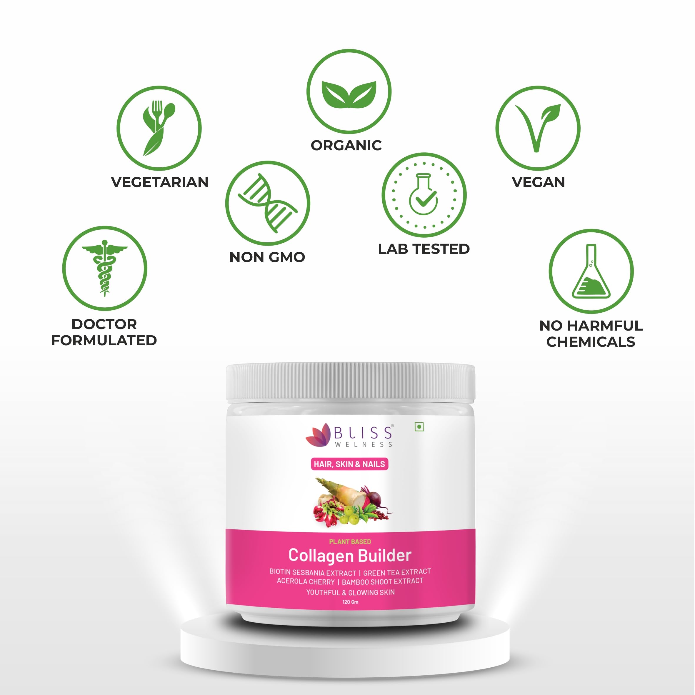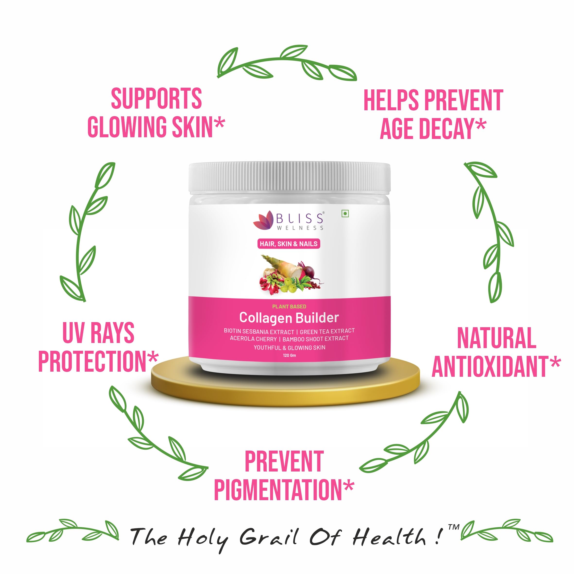 Bliss Wellness Plant-Based Collagen Builder Powder | Biotin Vitamin C Acerola Cherry Silica Sesbania Green Tea & Herbal Extracts | Glowing Skin Healthy Hair Reduced Pigmentation | 120g Berry