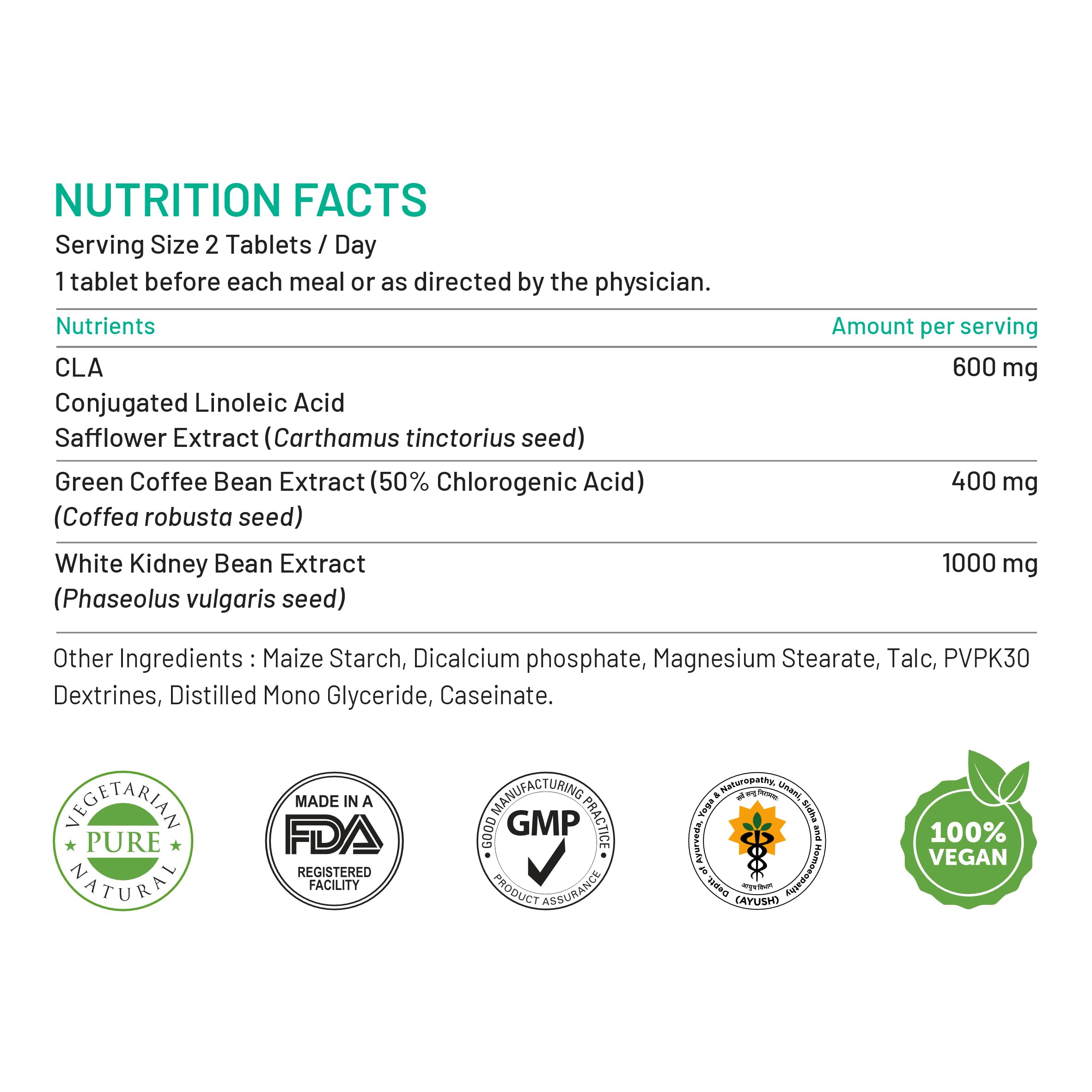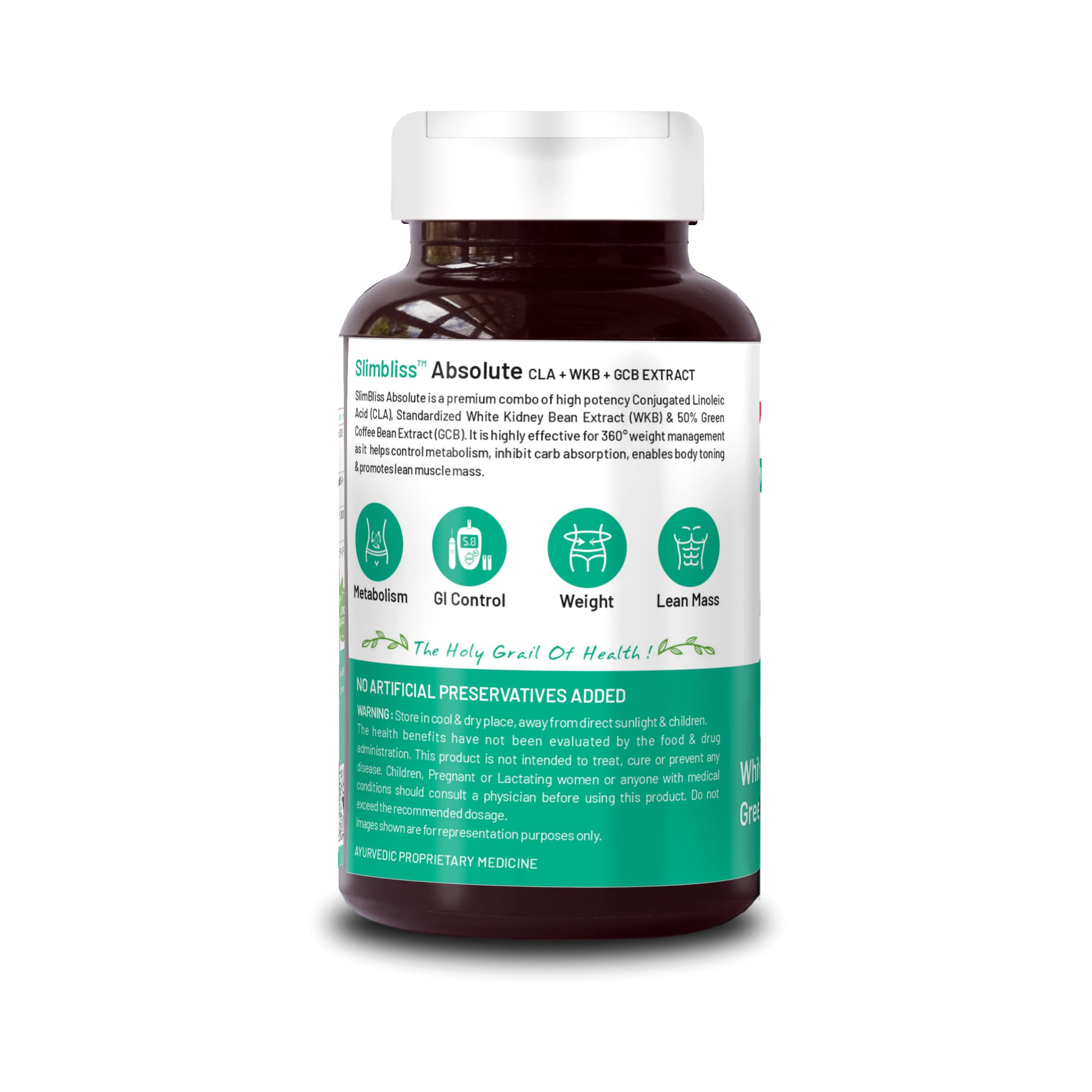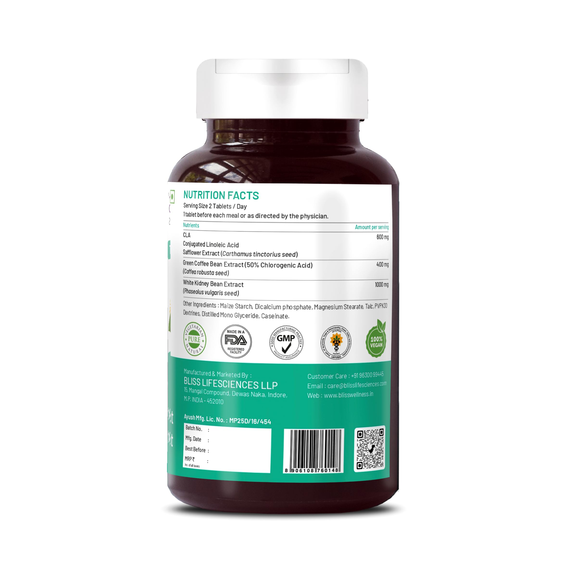 Bliss Welness 360* Weight Management | 50% (Green Coffee Bean Extract) + White Kidney Bean Extract + CLA | Carb Control | Metabolism Lean Muscle Health Supplement - 60 Vegeterian Tablets