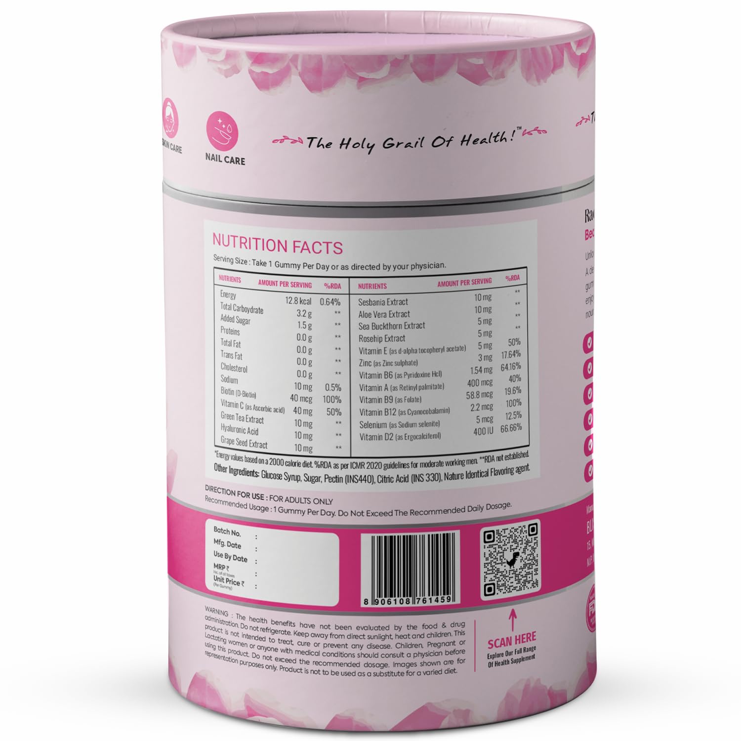 Complete Multivitamin Support in One Gummy - Provides a balanced mix of essential vitamins including Vitamin A D2 E B6 B9 B12 and minerals like Zinc and Sodium making it a comprehensive addition to a beauty-focused daily supplement plan.