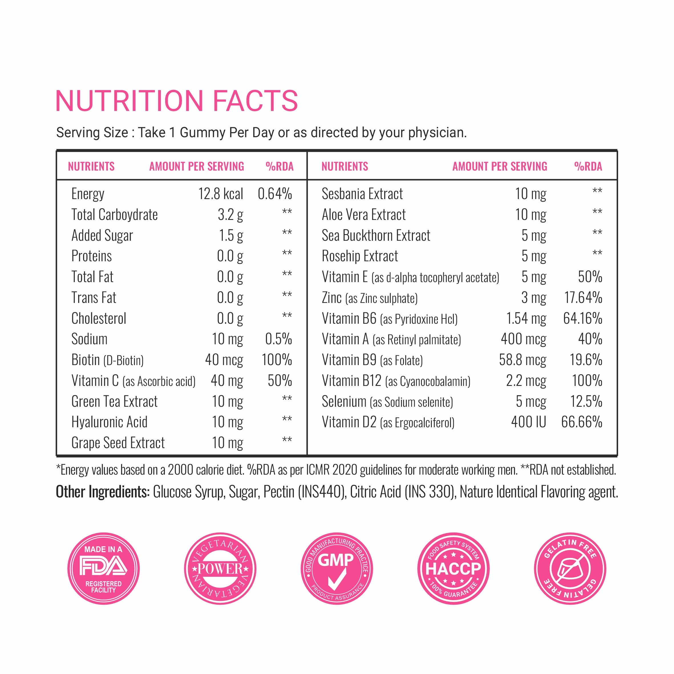 Daily Beauty Nutrition with Biotin & Vitamin Complex - Bliss Welness Hair Skin & Nail Gummies deliver 40 mcg of Biotin along with key beauty-supporting vitamins like A C E D2 B6 B9 and B12 â designed to support & enhance your everyday care routine with