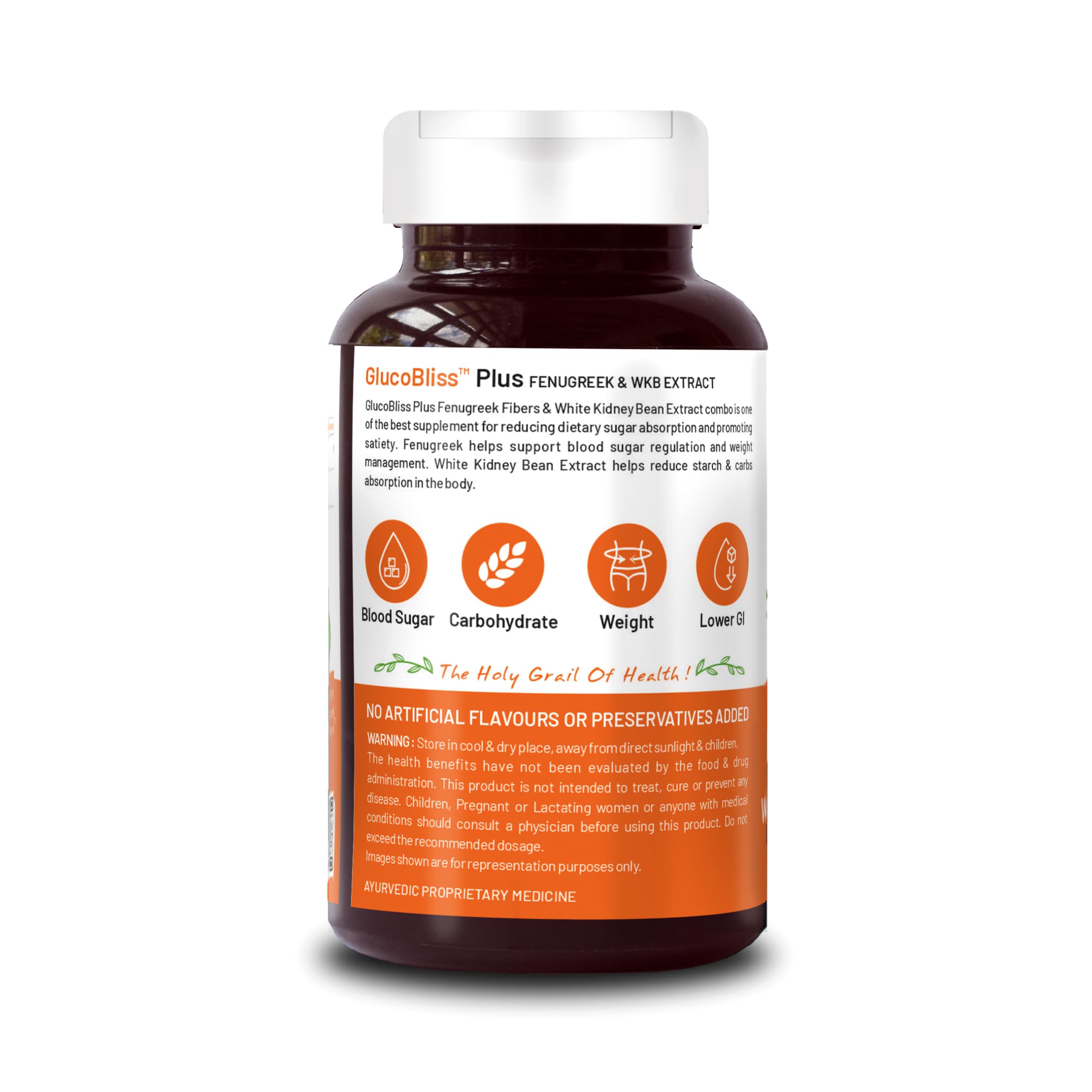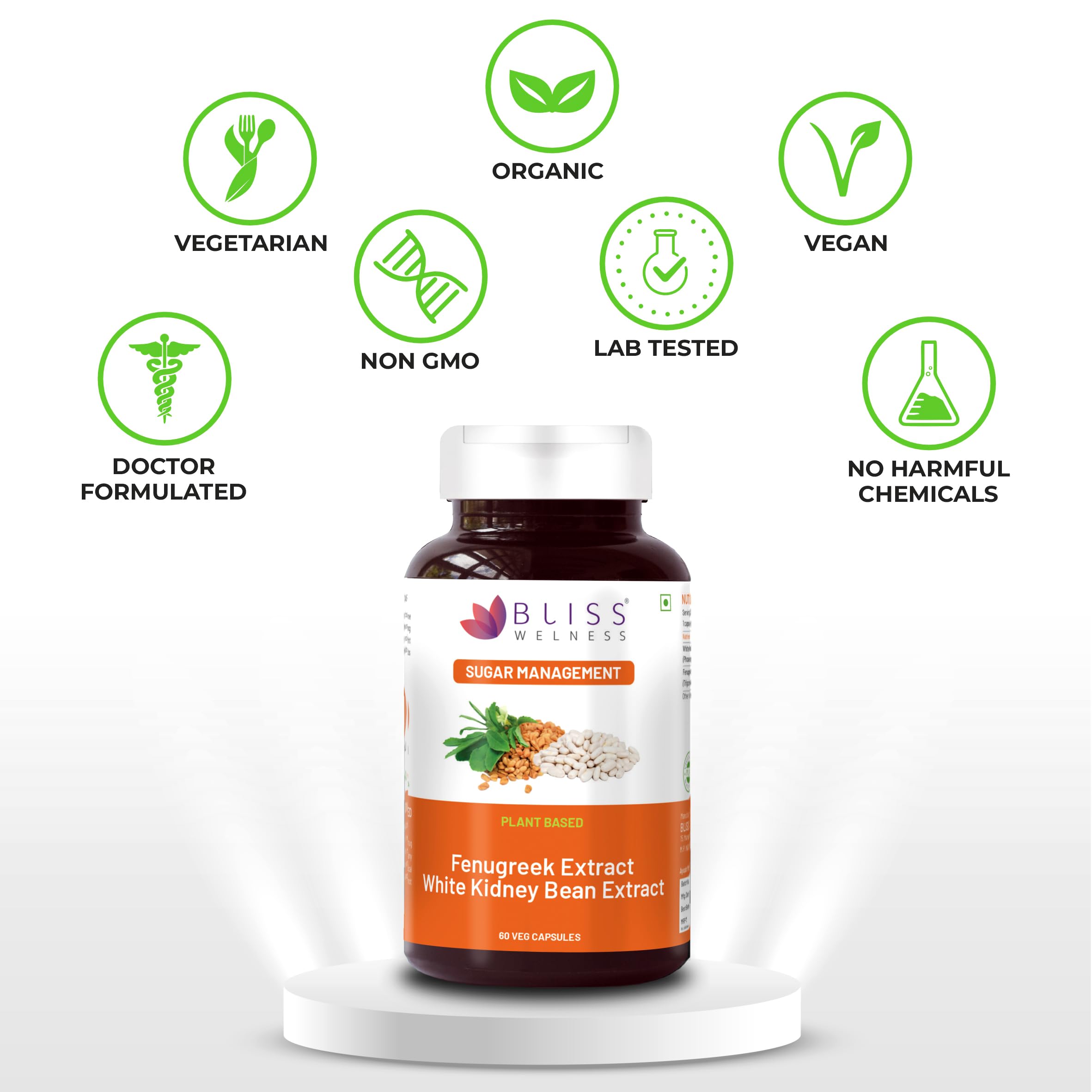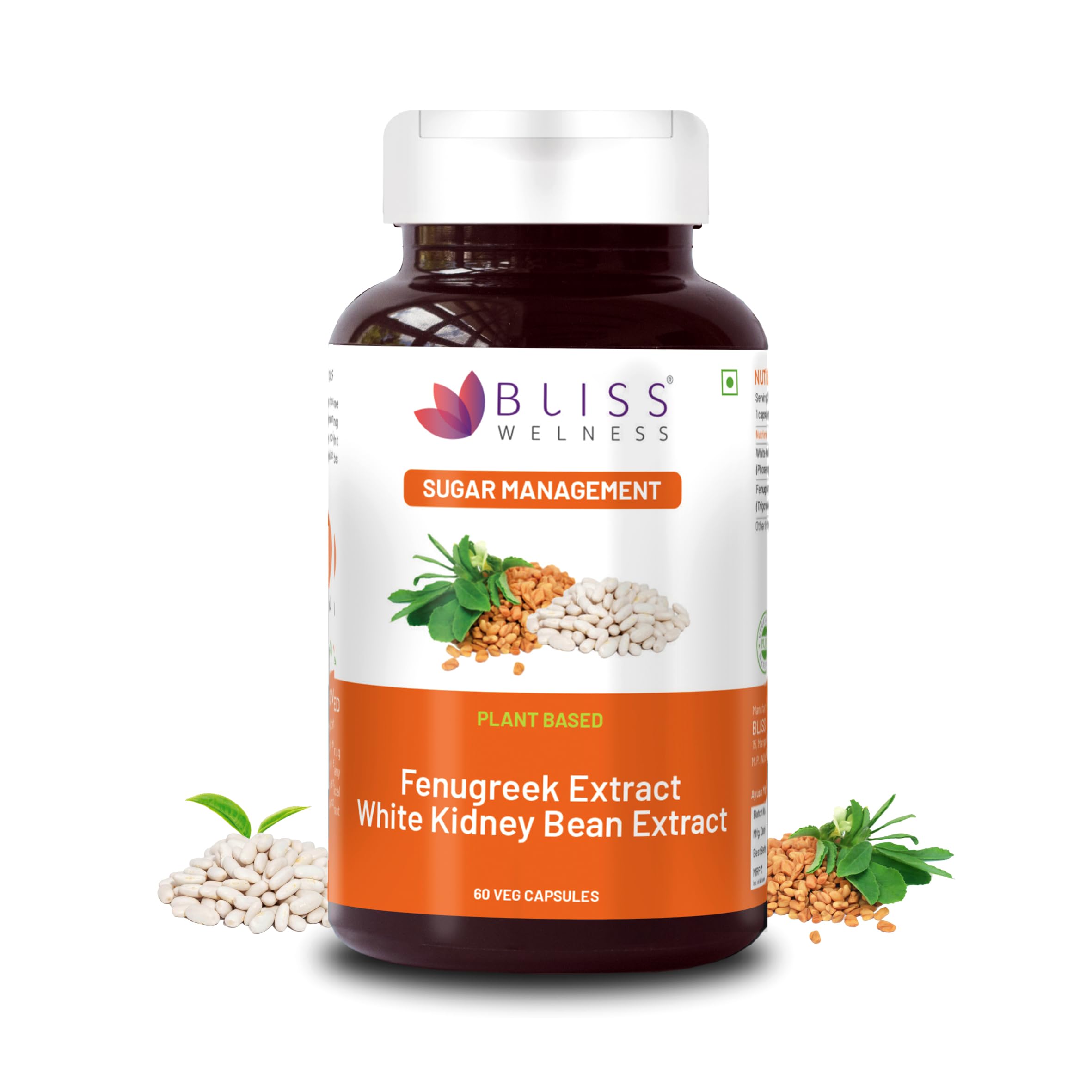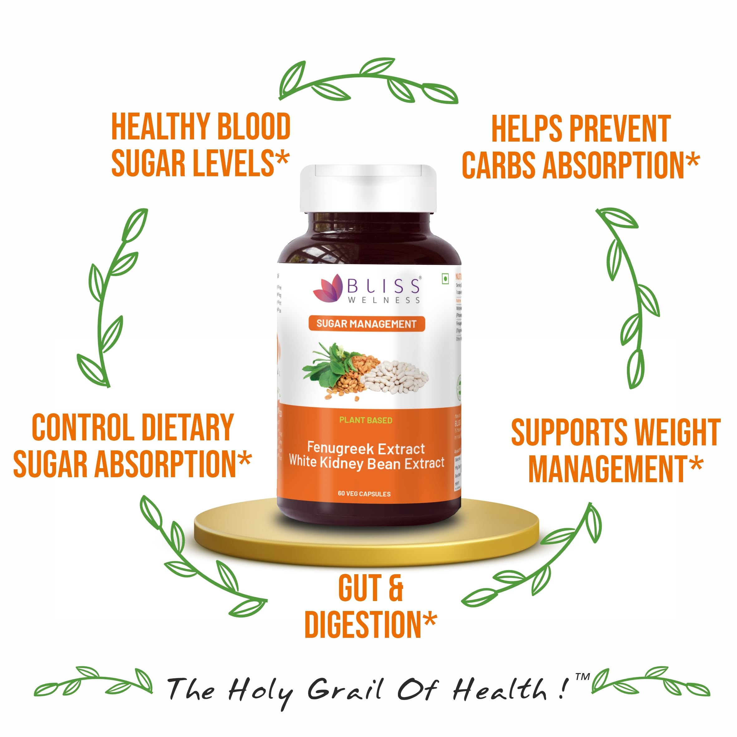 Bliss Welness Blood Sugar & Weight Management | Pure Fenugreek Extract 3X Saponins + White Kidney Bean Extract Carb Blocker | Gut Hair Skin Health Sugar Management Supplement - 60 Veg Capsules