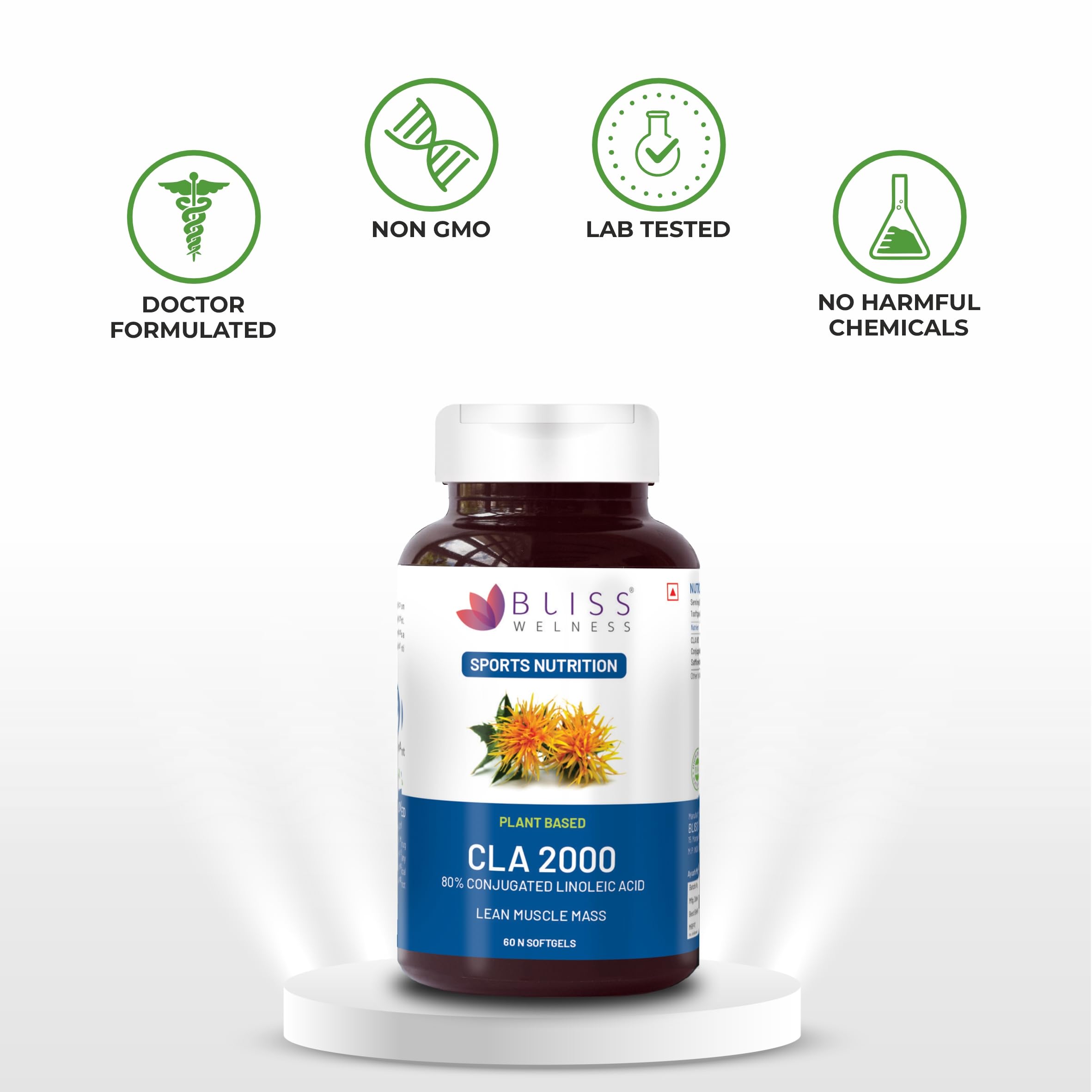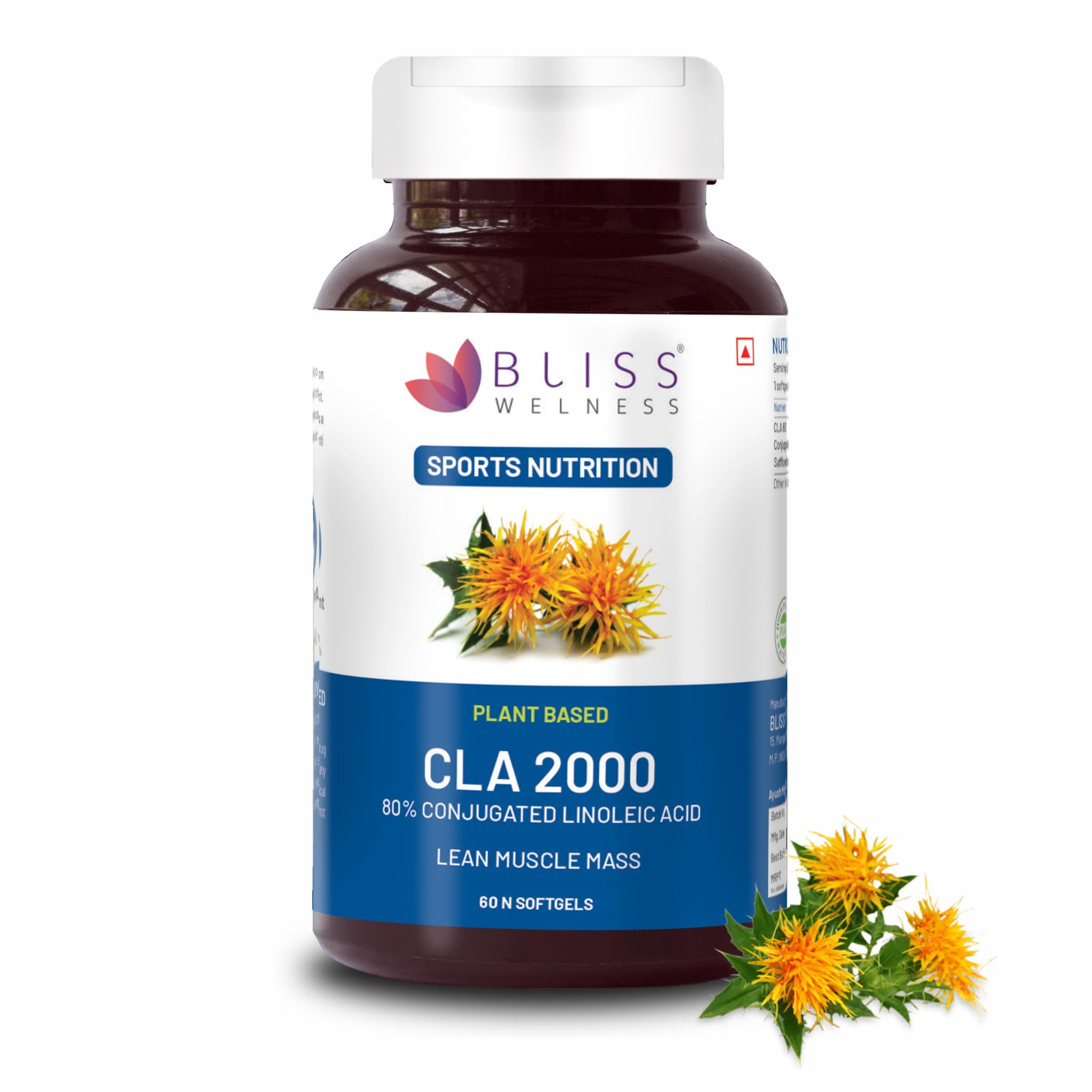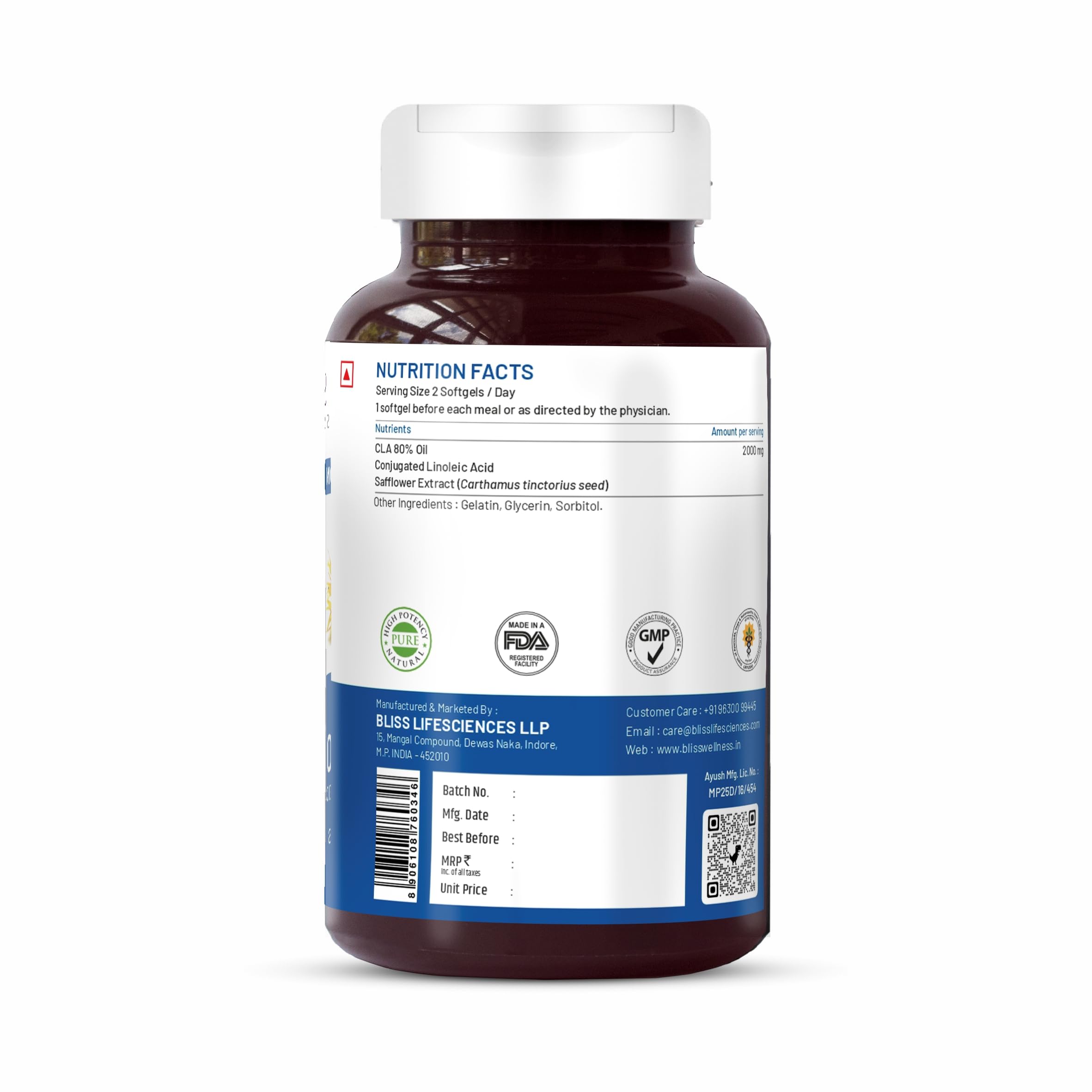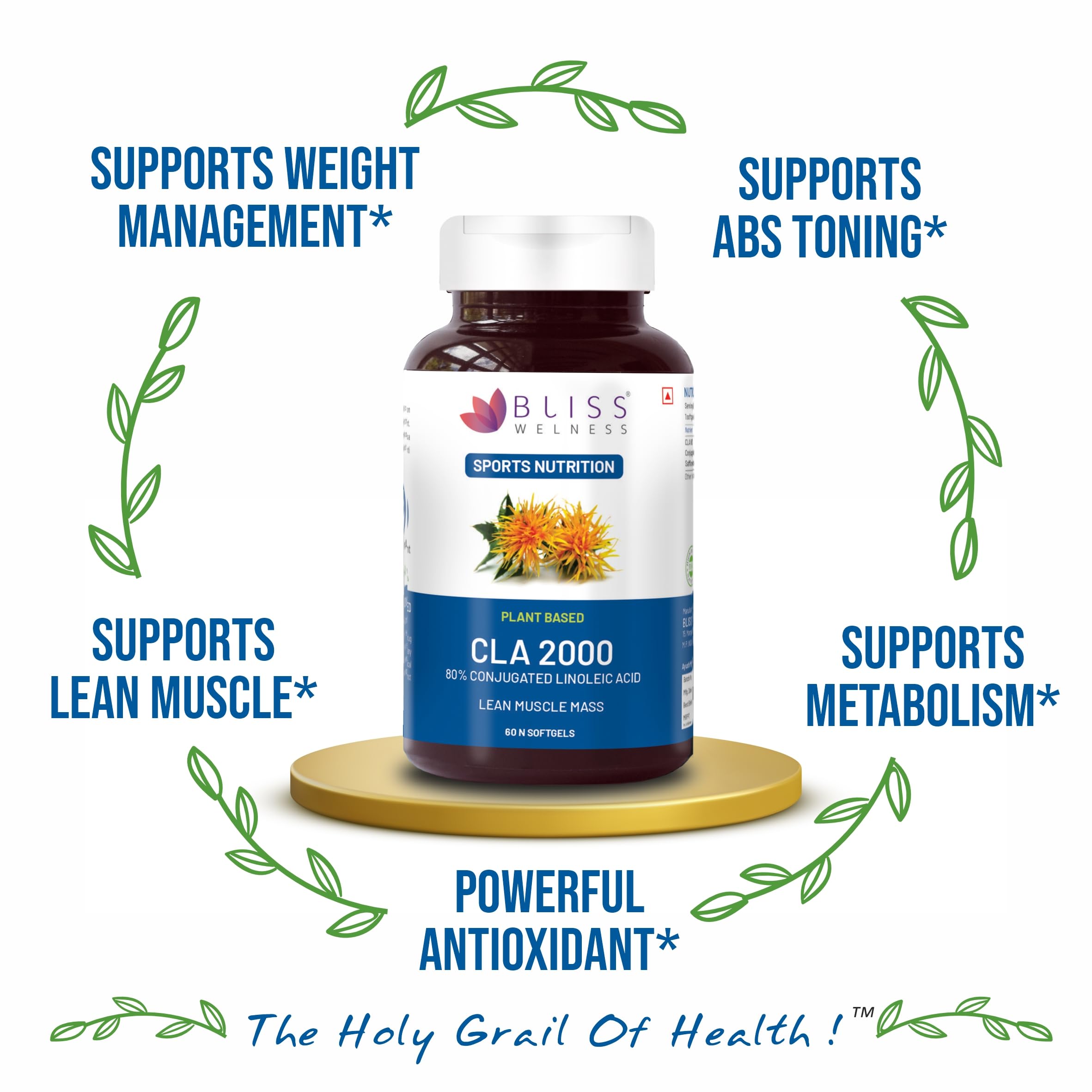 Bliss Welness CLA 2000 | 80% Conjugated Lenoleic Acid Safflower Oil Extract | High Potency Natural Pure Lean Muscle Build Weight Management Supplement -Pack of 60 Softgel Capsules