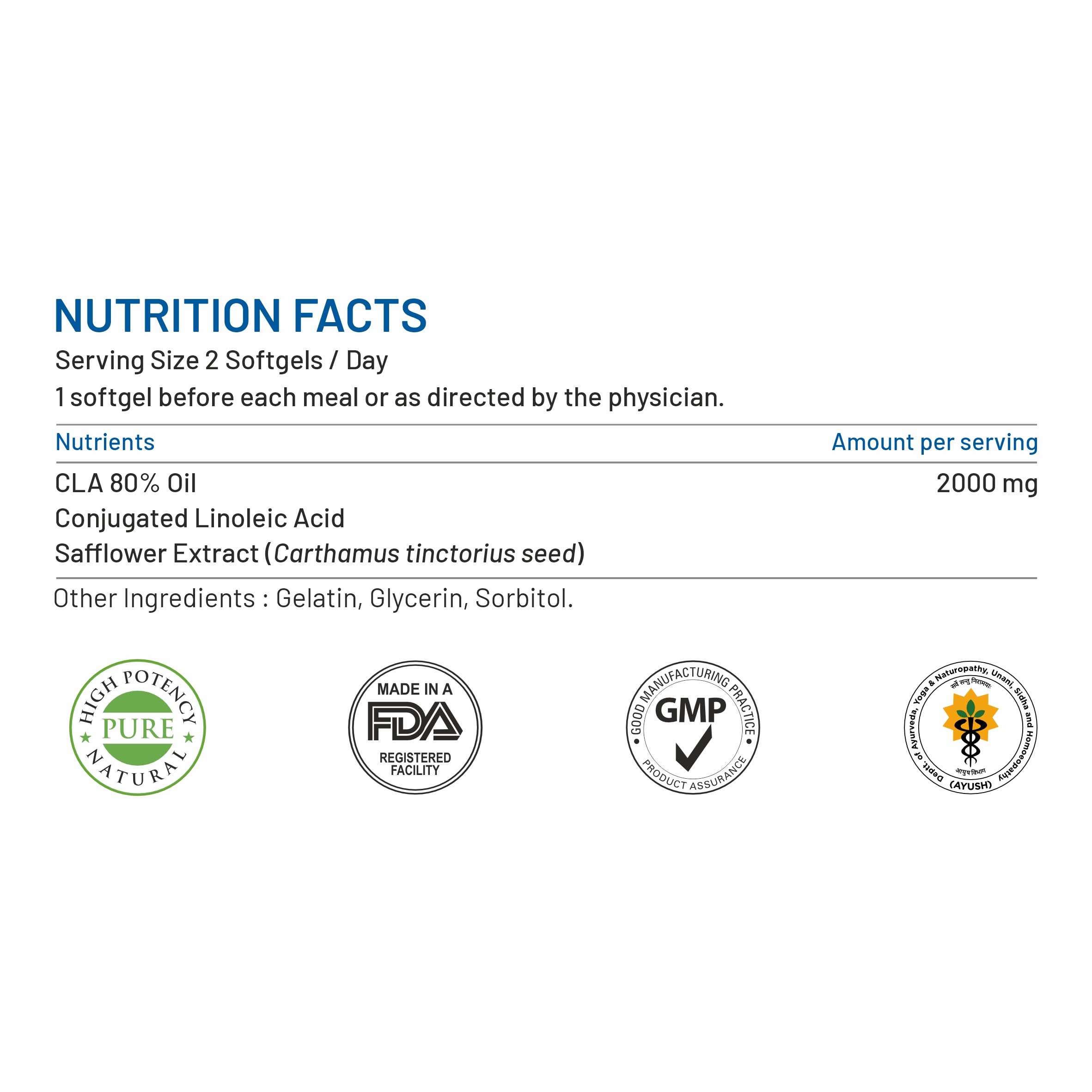 HIGH POTENCY FORMULA : Lean Bliss CLA ensures highest concentration (80% Purity) of biologically active CLA Isomers i.e. cis-9 trans-11 and trans-10 cis-12.