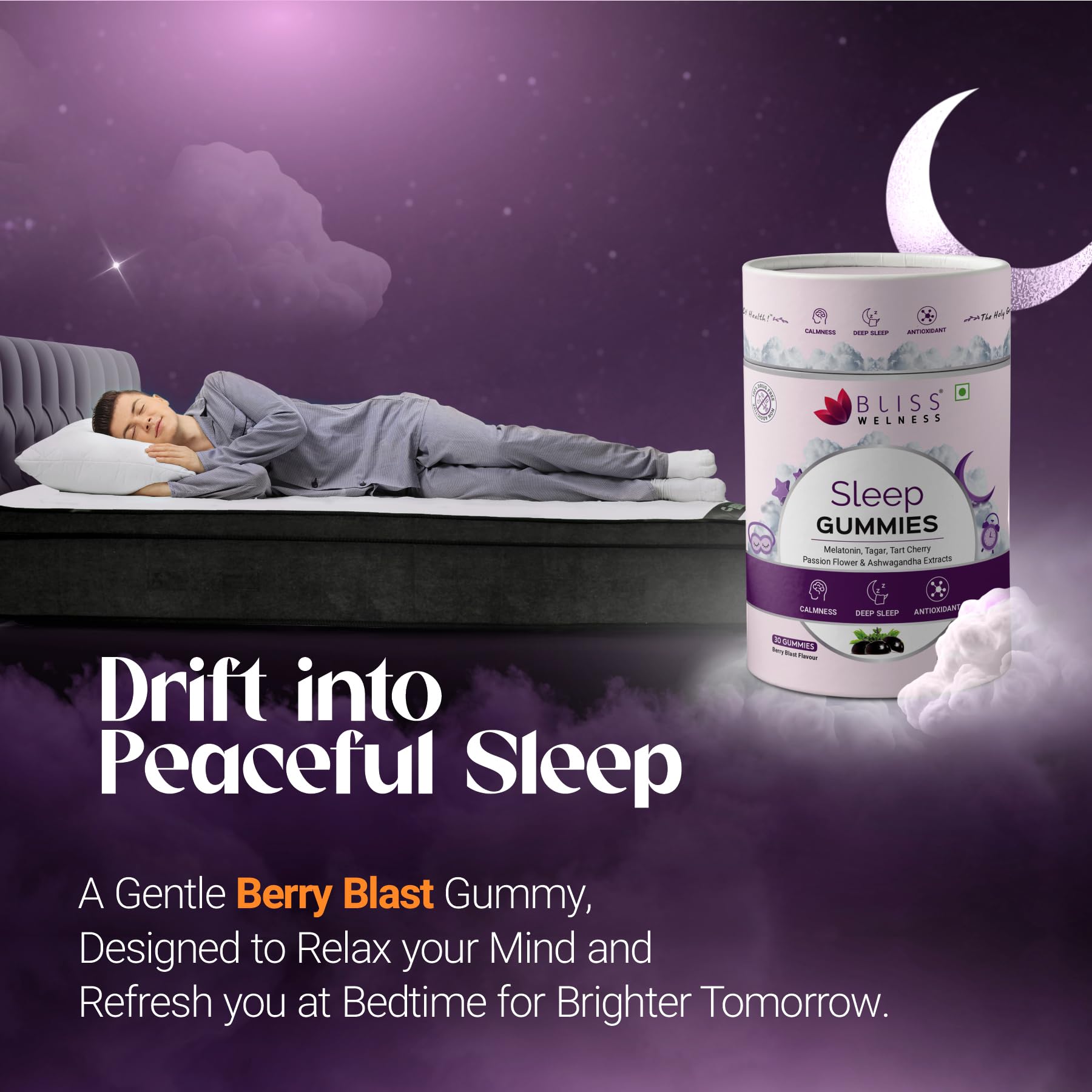 Bliss Welness Non-Addictive 10mg Valerian Root & Bilberry Extract Gummies|Fall Asleep Fast & Wake Up Regenerated No Next Day Drowsiness | Better Sleeping Cycle for Men & Women - 30 Vegetarian Gummies
