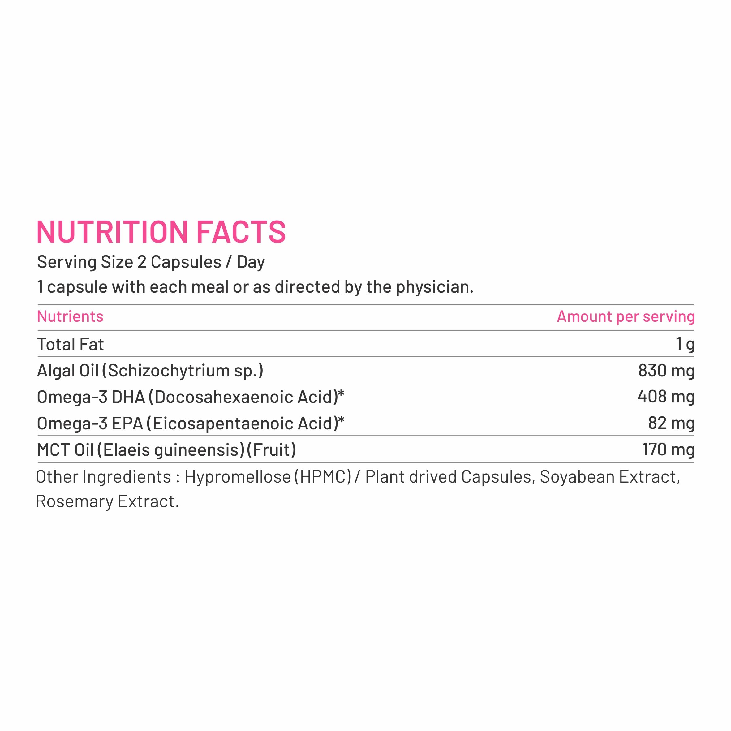 Support for Pregnant & Lactating Mothers: This Omega 3 vegetarian capsules is specially formulated to support pregnant and lactating mothers promoting fetal development postpartum recovery and breastfeeding. Additionally the inclusion of MCT helps fulfill