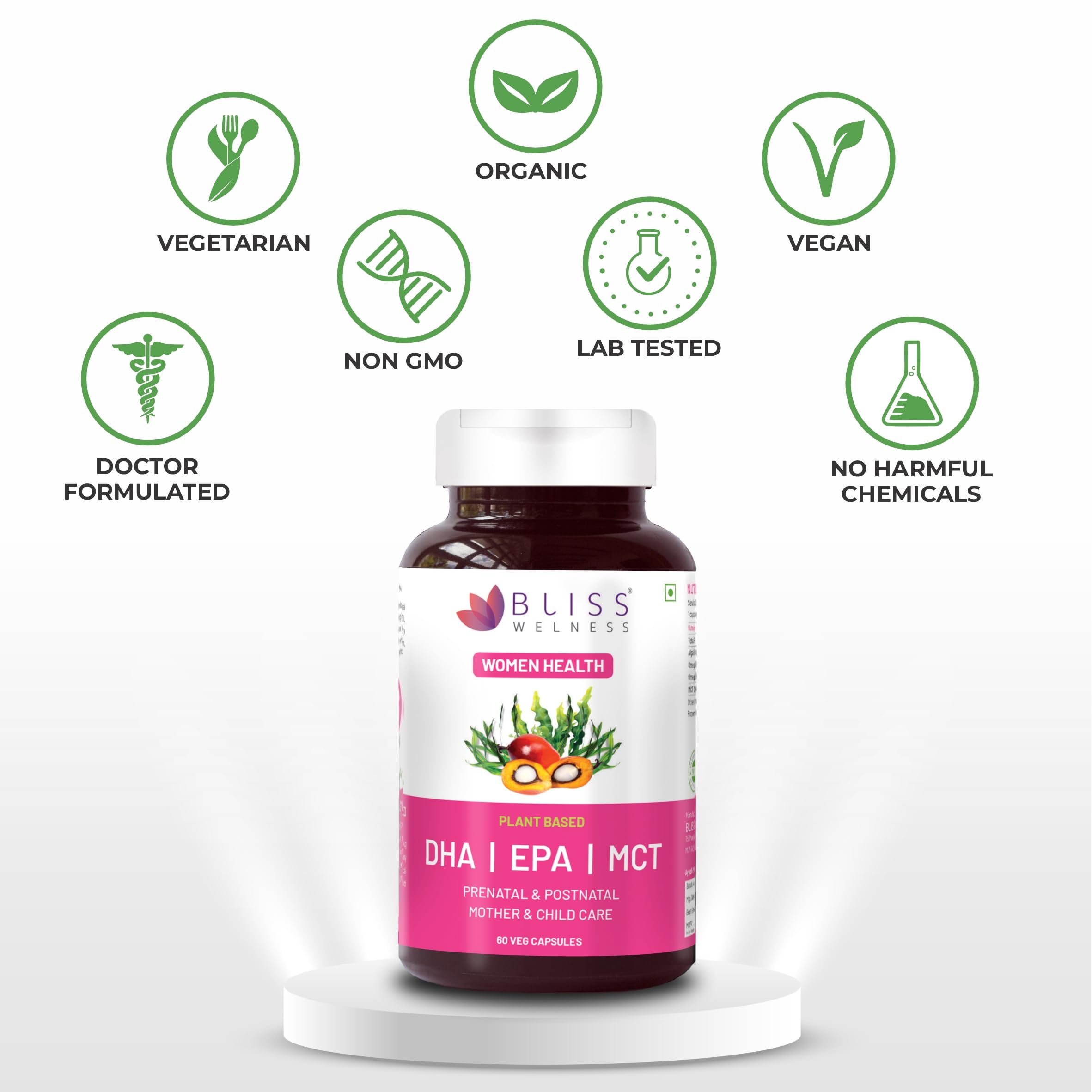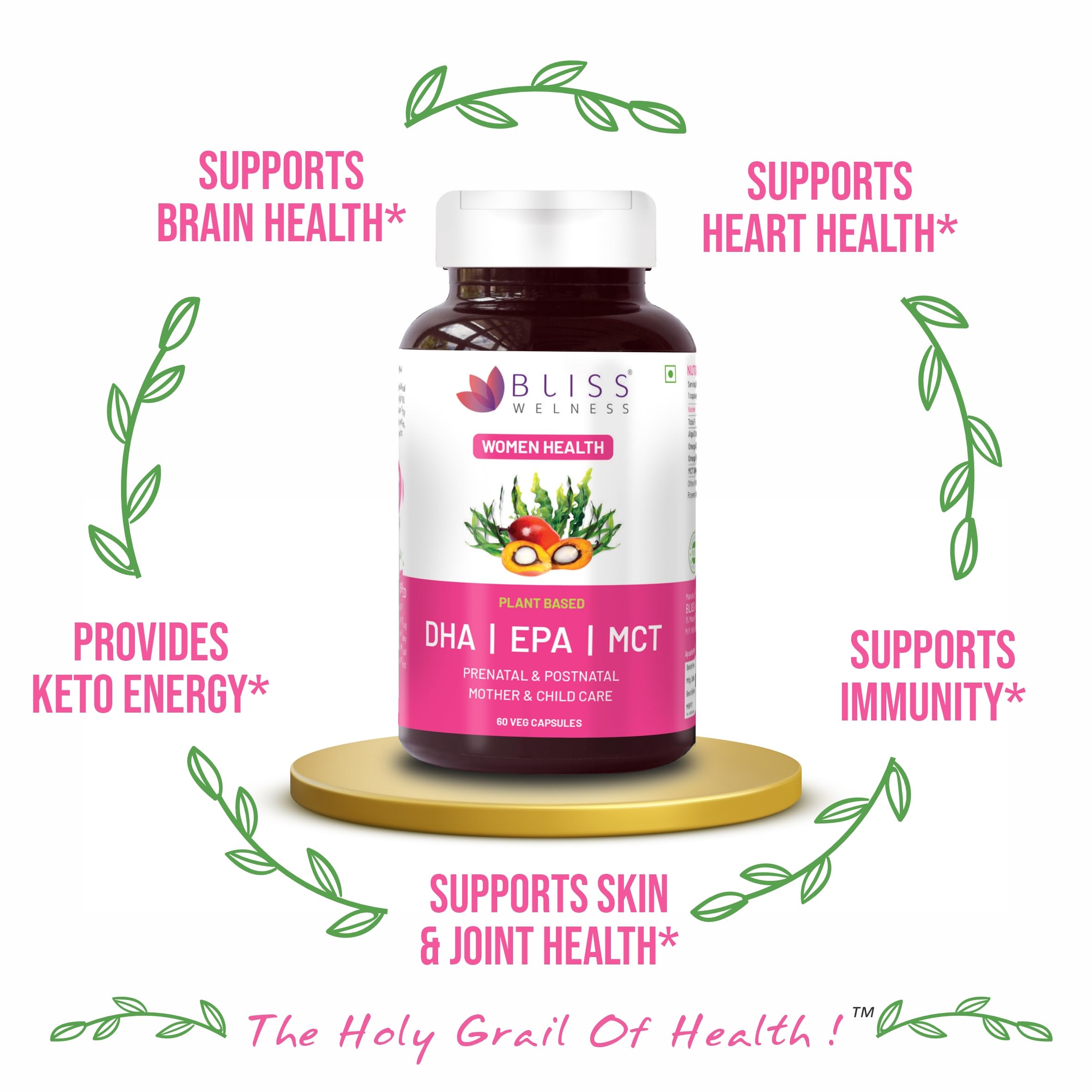 Bliss Welness Prenatal & Postnatal Care - Vegan Omega 3 Dha Epa Mct From Algae Oil|Essential Support For Pregnant & Lactating Mothers|Nourish Brain Heart & Overall Development|60 Vegetarian Capsules