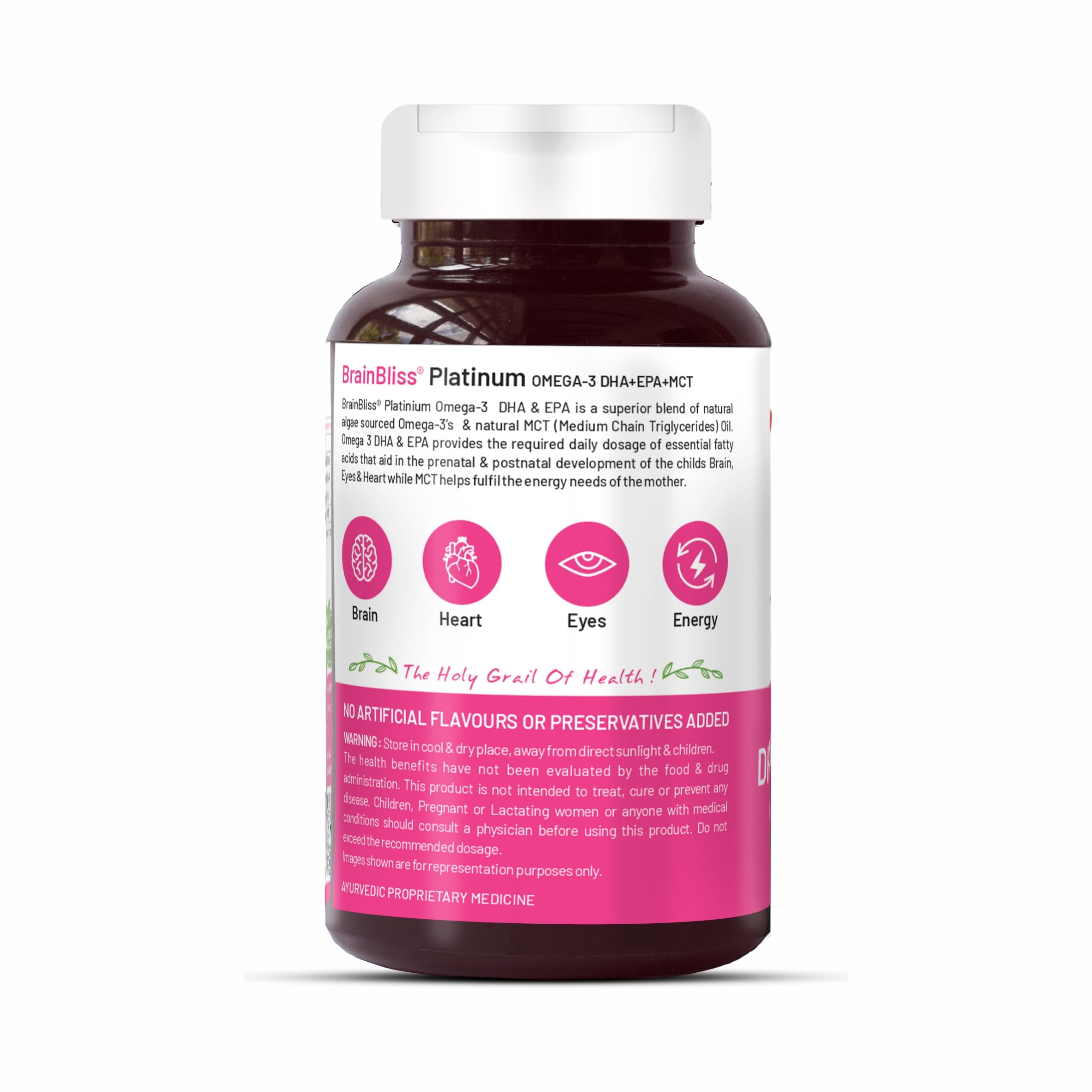 Promotes Brain Development: Bliss Welness Vegan Omega 3 prenatal and postnatal supplement supports the development of a healthy brain in unborn and newborn babies providing vital nutrients crucial for optimal cognitive function.