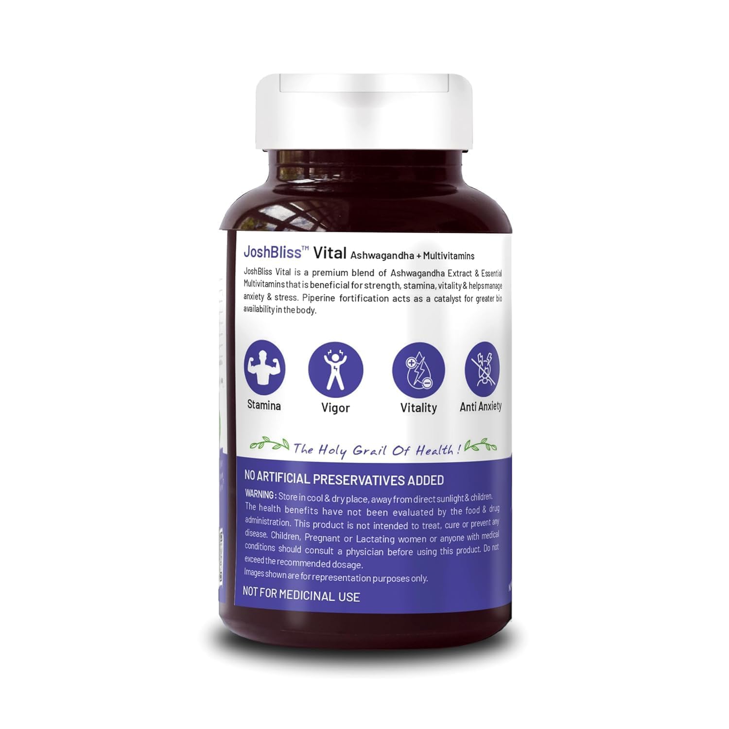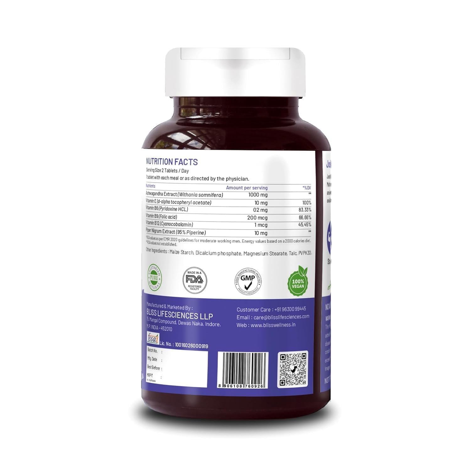Bliss Welness Pure Ashwagandha 1000mg + Multivitamins | Strength Vitality Stress Relief | General Wellness Rejuvenates Mind & Body Anti Anxiety Health Supplement - 60 Vegetarian Tablets