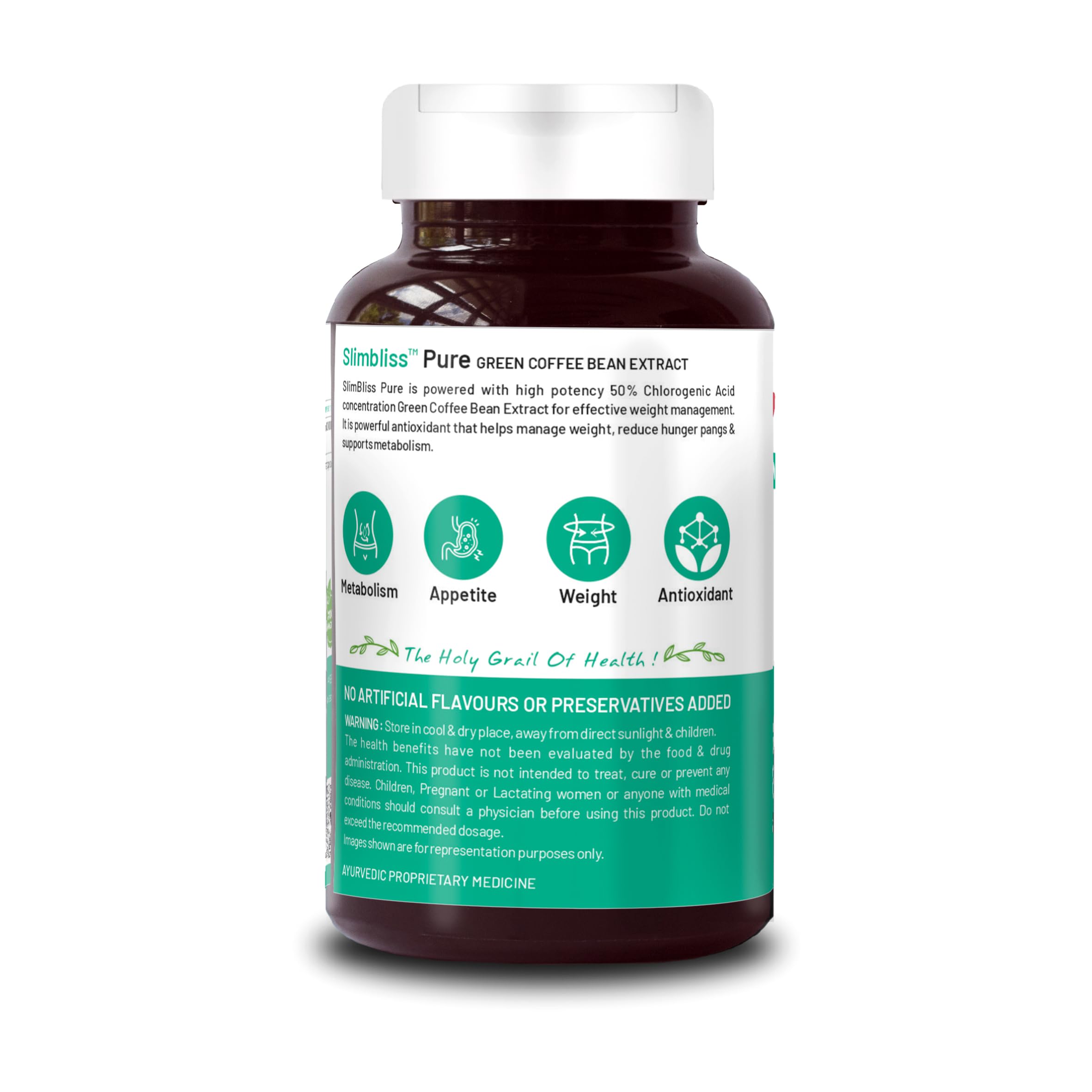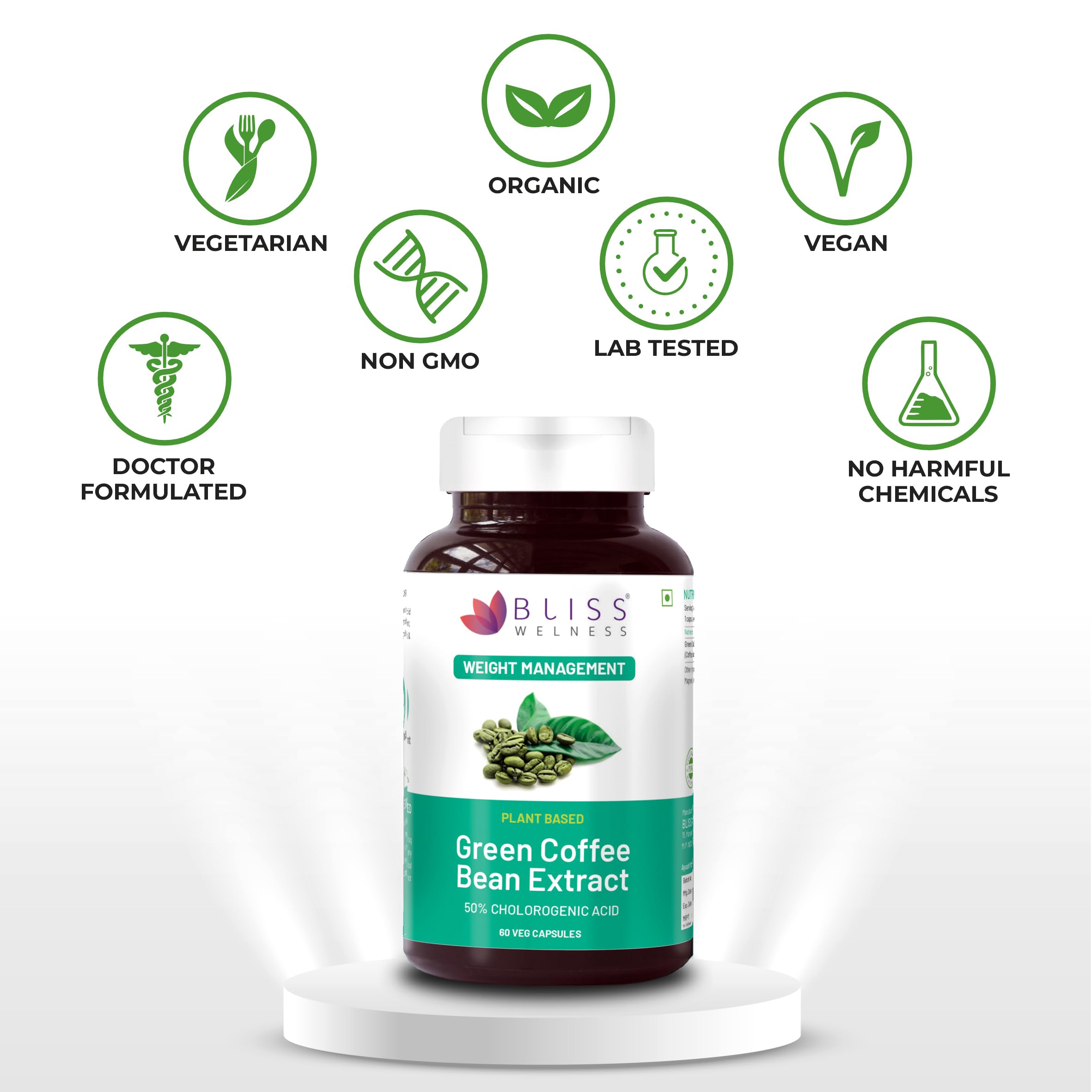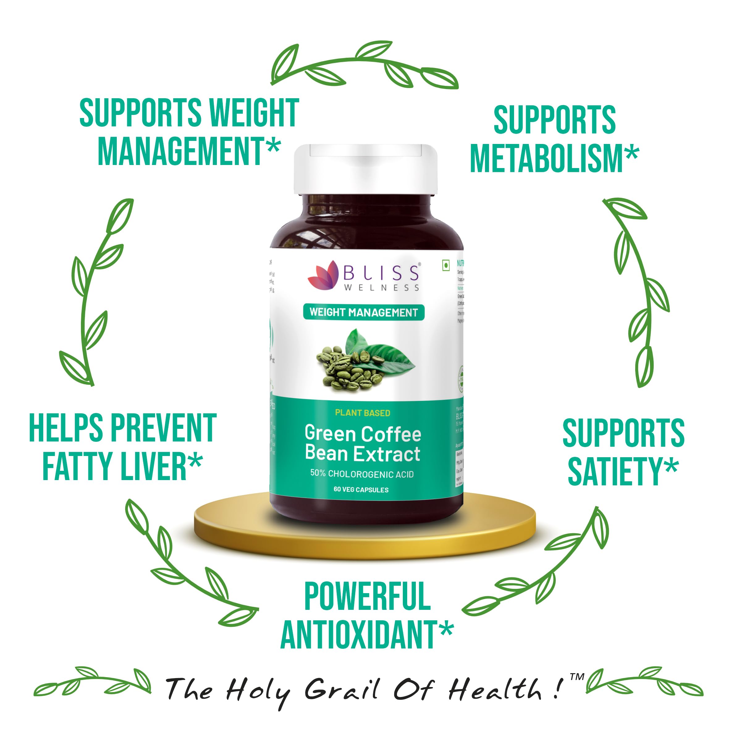 Bliss Welness Pure Weight Management Appetite Control | Green Coffee Bean Extract 50% | Fatty Liver Care Enhance Metabolism Strong Antioxidant Natural Supplement - 60 Vegetarian Capsules