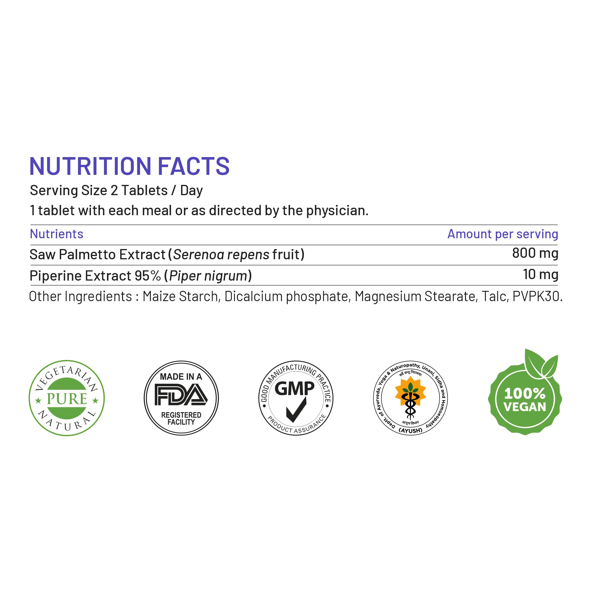 SUPPORTS PROSTATE HEALTH : Saw Palmetto Extract helps in improving urinary symptoms and also ensures optimal prostate health.