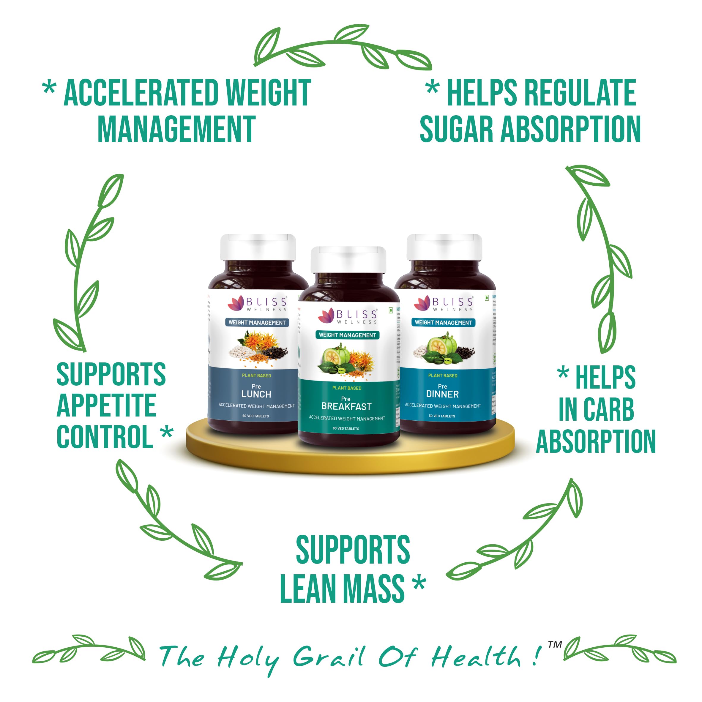 Bliss Welness Trio Of Garcinia Cambogia Cla Fenugreek Extract Green Coffee Bean Supplement For Metabolism-Weight Management | For Men & Women - 60+60+30 Tablet