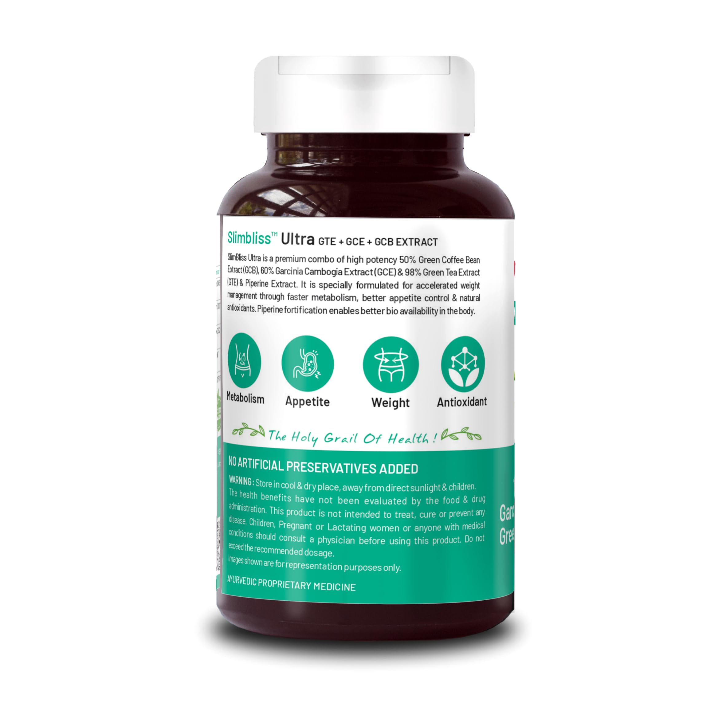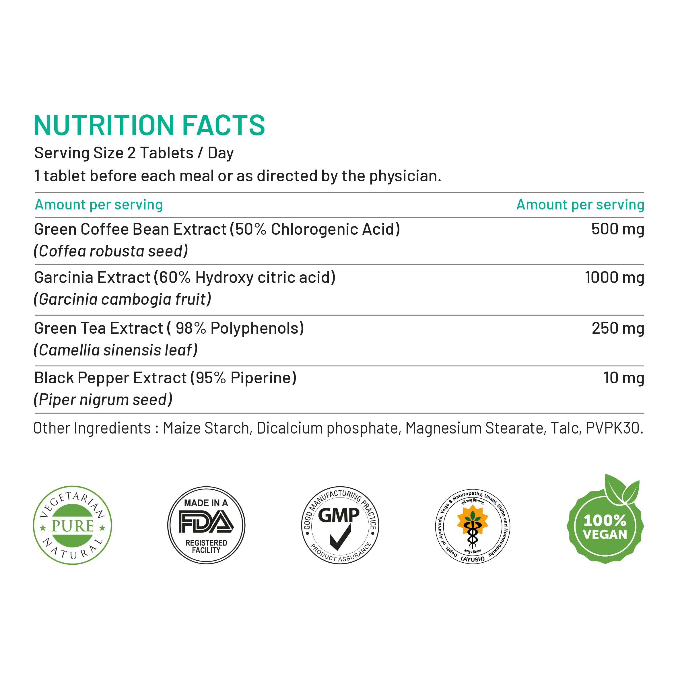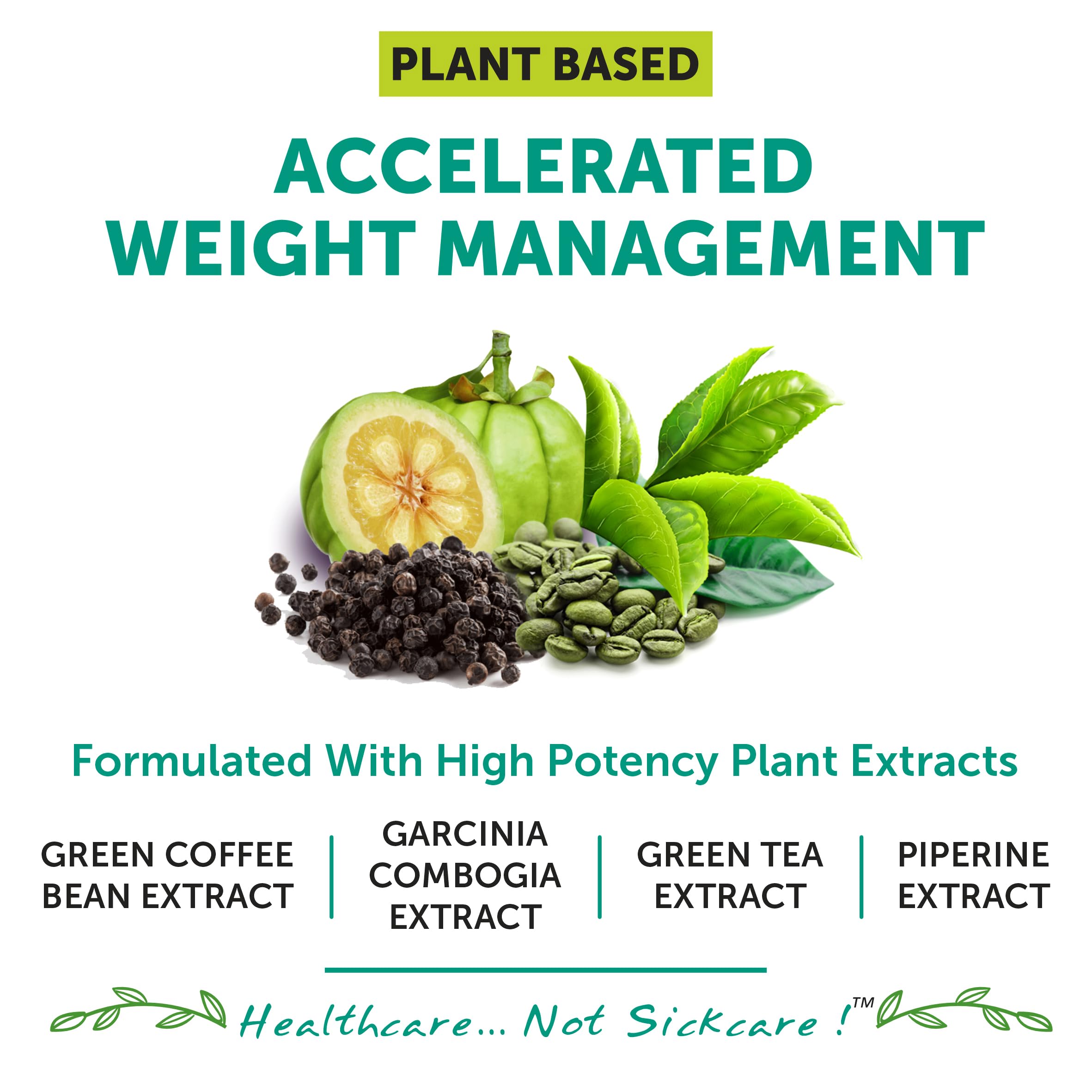 PREMIUM ALL ROUND WEIGHT MANAGEMENT COMBO : The unique combination of Green Tea Extract Green Coffee Bean Extract 50% Garcinia Combogia Extract 60% & Piperine gives a 360 degree effect on Weight Management for maximum results.