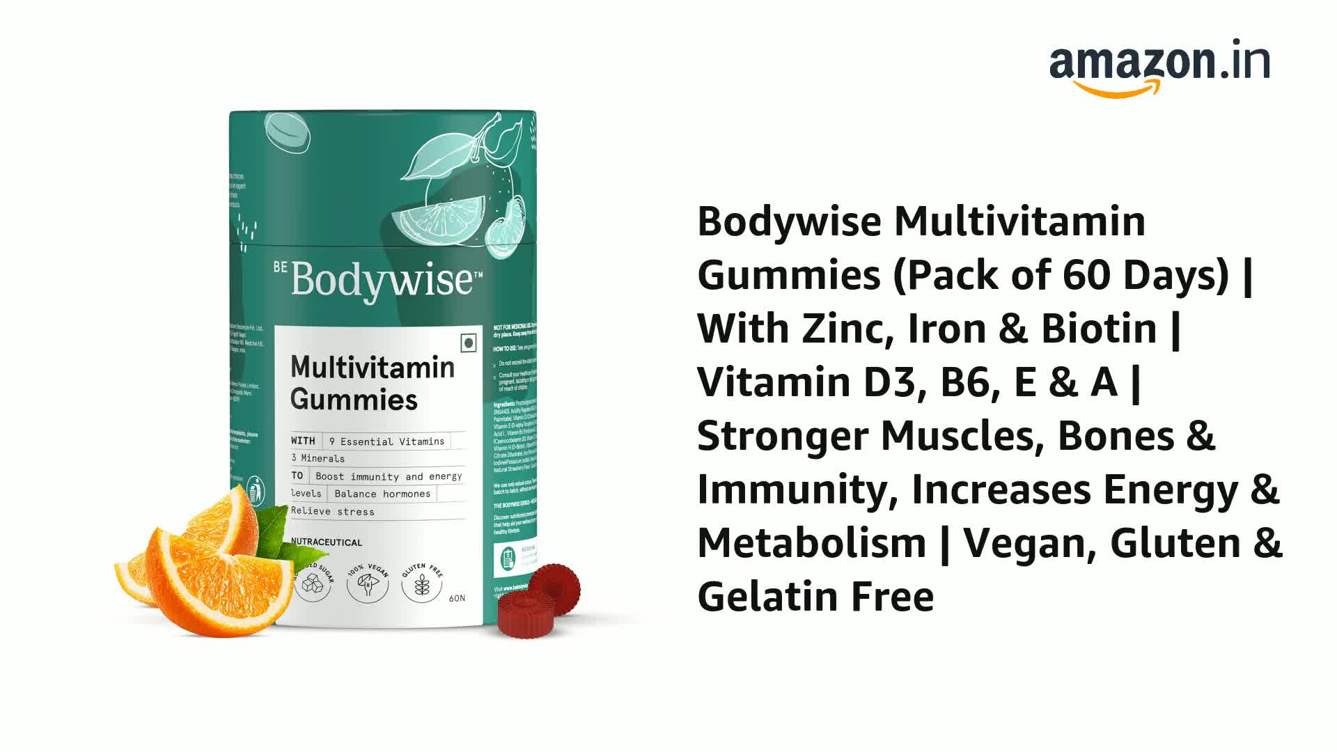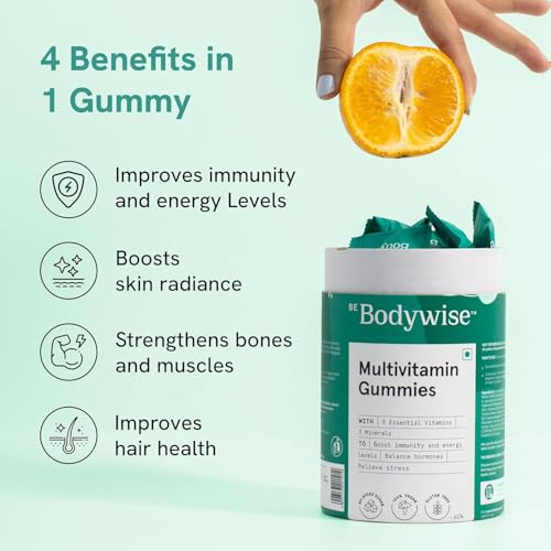 • INFUSED WITH NATURAL INGREDIENTS - Bodywise Multivitamin Gummies are rich in 9 essential vitamins and 3 minerals that help fulfil deficiencies & provides your body with all the vitamins and minerals you need for strong hair glowing skin and healthy nails