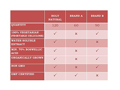 Our Boswellia is standardized and to contain 70% Boswellic Acids to deliver powerful relief from achy joints muscles pain and knees. Boswellia extract has been used in Ayurvedic medicines to support the strength and health of connective tissues. Supports a stronger metabolism and can act as a natural mood booster. Get natural energy boost Take 2 capsules daily with meal or 8 oz of water or as directed by healthcare practitioner. 100% pure & natural product