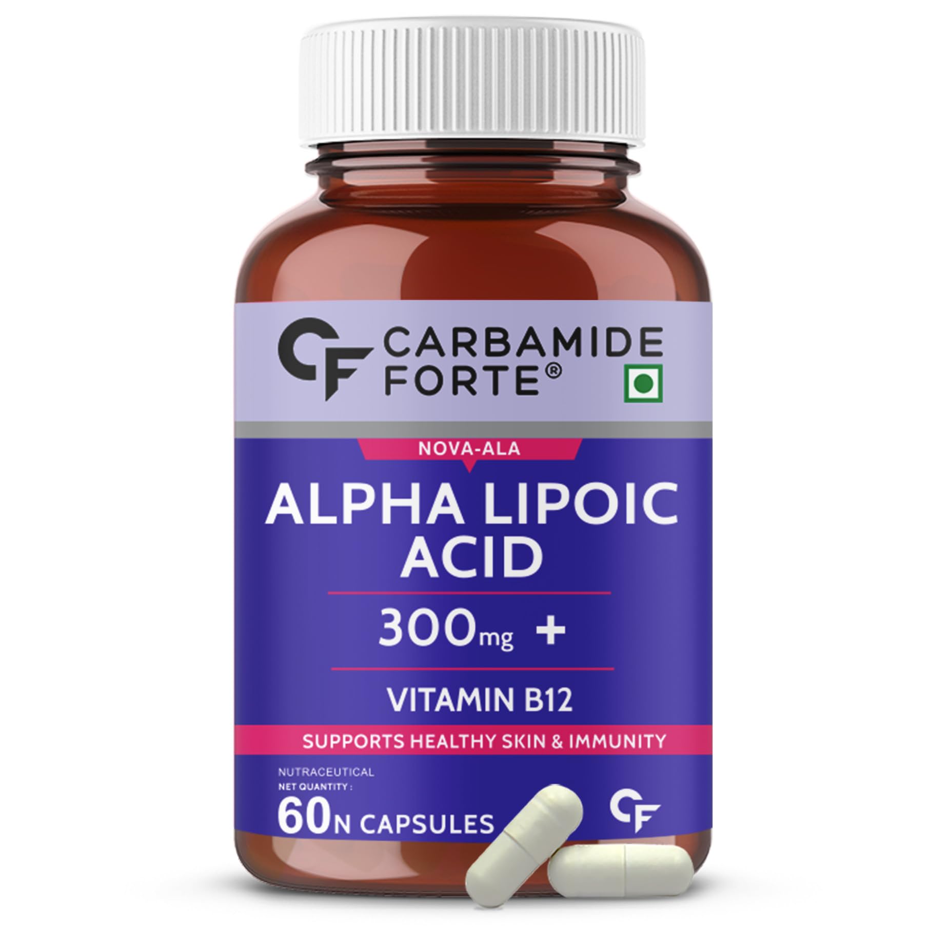 Carbamide Forte Alpha Lipoic Acid 300mg - ALA Capsules with Vitamin B12 & Lycopene | ALA Supplement | Supports Healthy Skin & Immunity - 60 Veg ALA Capsules