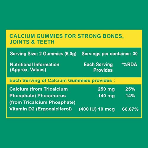 Carbamide Forte Calcium with Vitamin D Gummies for Men & Women| Calcium Gummies for Women & Men for Stronger Bones Joints & Teeth & Immunity - Mango & Strawberry Flavour - 60 Veg Gummies