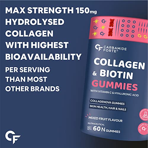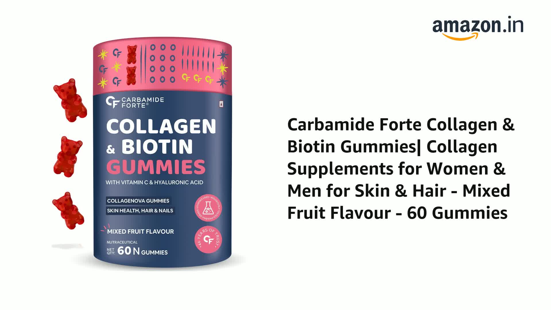 HomeHealth & PersonalDiet & NutritionHealth SupplementsCarbamide Forte Collagen Supplements for Women & Men | Collagen Gummies For Women & Men | Hair Gummies for Women Hair Growth| Collagen Supplements for Skin | Biotin Supplement - Mixed Fruit Flavour - 60 Biotin Gummies