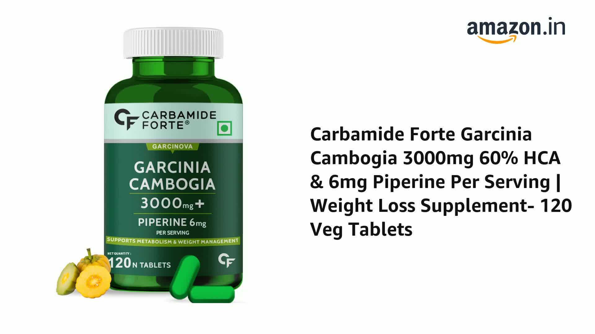 Carbamide Forte Garcinia Cambogia 3000mg 60% HCA & 6mg Piperine Per Serving | Weight Loss Supplement- 120 Veg Tablets