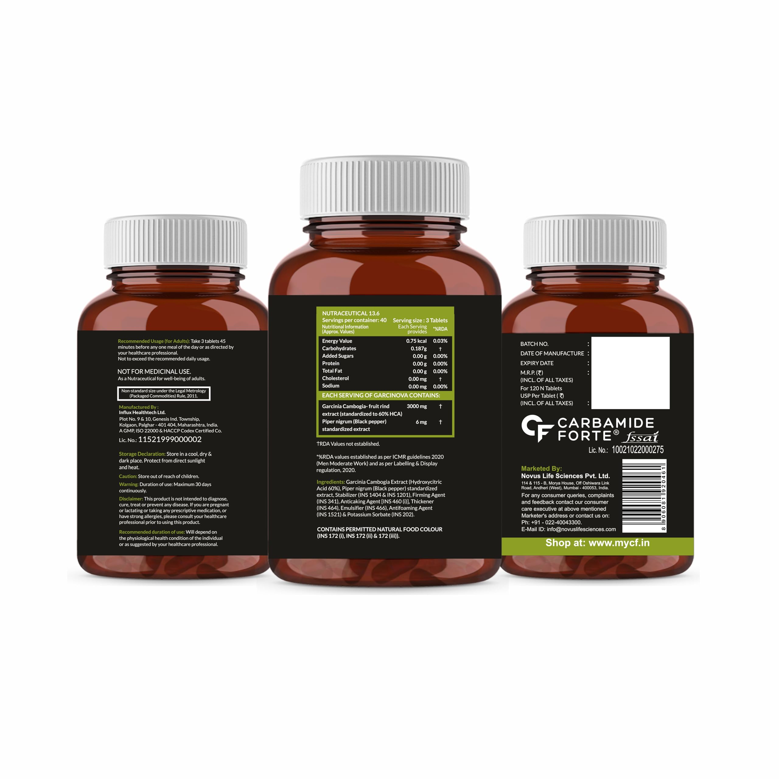 Carbamide Forte Garcinia Cambogia 3000mg 60% HCA & 6mg Piperine Per Serving | Weight Loss Supplement- 120 Veg Tablets