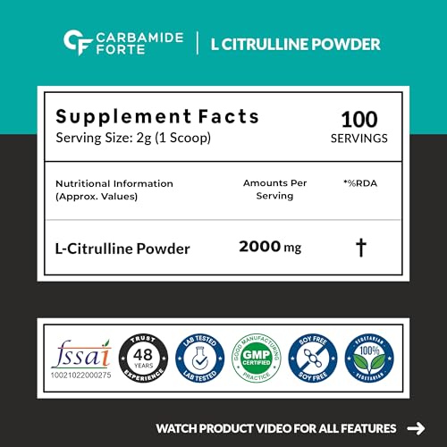 Carbamide Forte L Citrulline Powder 2000mg | pre workout Supplement for men & Women | L Citrulline Malate Powder | 2000mg 100 Unflavored Servings