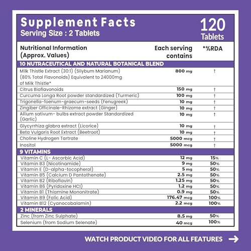 CAREFULLY DESIGNED WITH 20 INGREDIENTS: Our silymarin milk thistle tablet gives max value with Milk Thistle Other Natural Extracts Amino Acids Blend & Multivitamin Blend packed in just two tablets designed to support your liver.