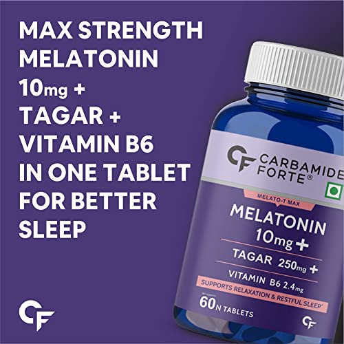 Carbamide Forte Melatonin 10 mg Sleeping Pills with Tagar 250 mg | Sleep Supplement for Men & Women | Melatonin Tablet for Restful Deep Sleeps - 60 Veg Tablets.
