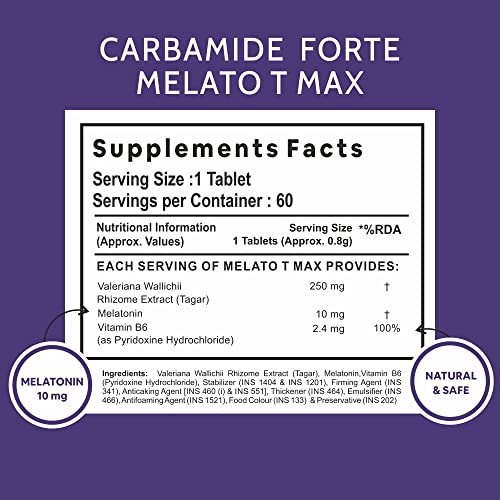 Carbamide Forte Melatonin 10mg with Tagar 250mg Sleeping Aid Pills - 60 Veg Tablets