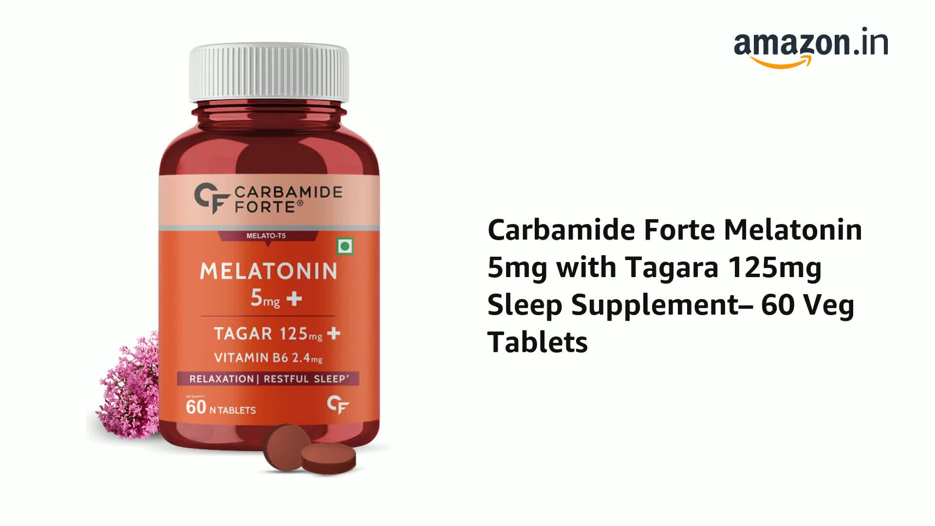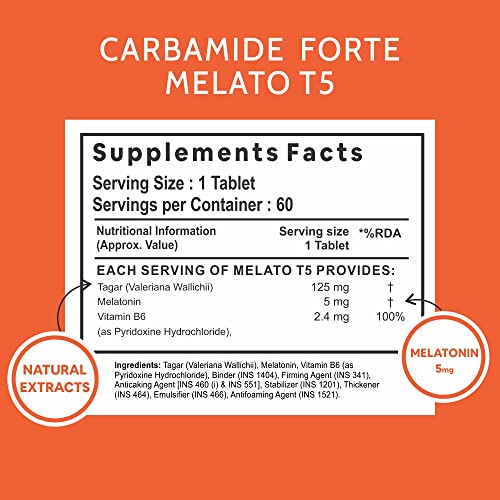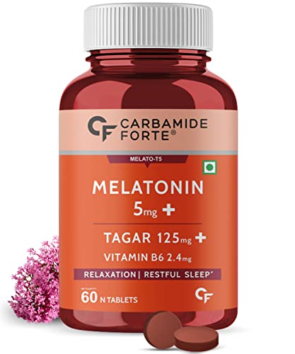 HomeHealth & PersonalDiet & NutritionHealth SupplementsCarbamide Forte Melatonin 5mg Sleep Tablets Sleeping Pills with 125mg Tagar & Vitamin B6 for Deep Sleep, Restful Nights, and Effective Sleep Dose | Sleeping Tablets for Women & Men 60 Veg Tablets
