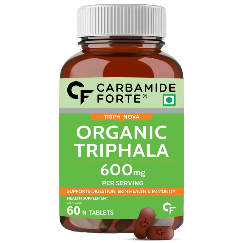 Carbamide Forte Organic Triphala Powder Tablets | 100% Natural 600mg Triphala Churna Powder Organic Tablets support Healthy Digestion Improve Gut Health & Relieve Constipation | Triphala Tablets for eyeshair liver | 60 Tablets
