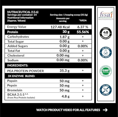 This Pea isolate protein is an excellent choice for those seeking a high-quality, plant-based protein supplement. In Each serving contains you get 30 grams of protein and 4.8 grams of BCAAs, making it great for muscle growth and recovery.Must recommend product ??