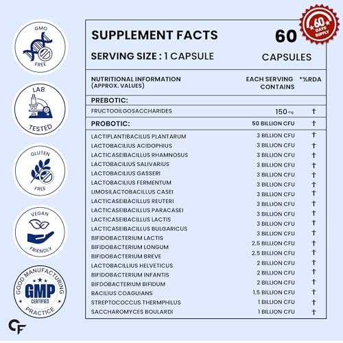 HomeHealth & PersonalDiet & NutritionHealth SupplementsCarbamide Forte Probiotics Supplement 50 Billion CFU Gut Health Supplements with Probiotic | Gut Cleanse with Prebiotics and Probiotics | L Reuteri Probiotics Supplement for Gut Health – 60 Capsules
