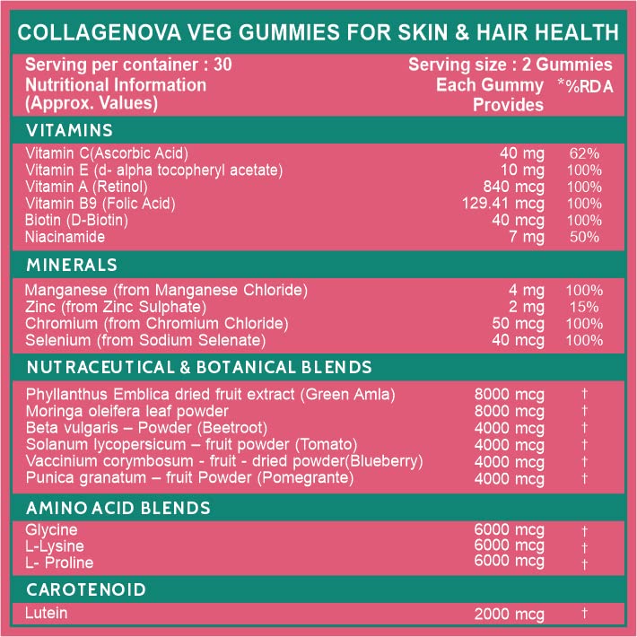GET LUSTROUS SMOOTH & STRONGER HAIR FROM THE ROOTS: Loaded with our Vitamin & Mineral Blends our collagen booster for skin will help smoothen your hair and make it strong again by strengthening the hair from its roots. It can also increase the strength of