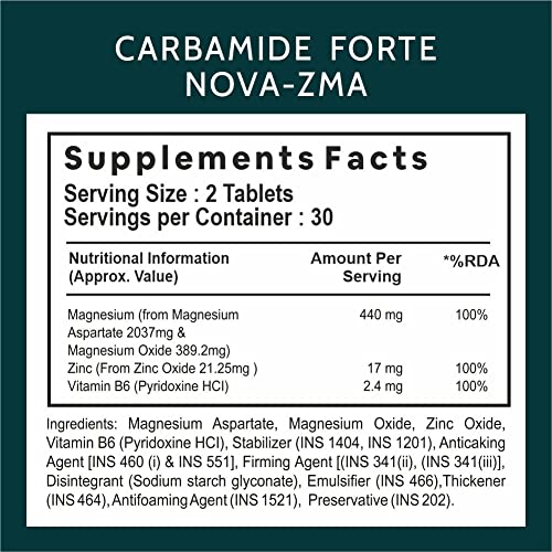 HomeHealth & PersonalDiet & NutritionHealth SupplementsCarbamide Forte ZMA and Zinc Supplement for Men | Zinc and Magnesium Supplements with Vitamin B6 | Zinc tablets May Support Muscle Recovery and Sleep Quality | 60 Tablets