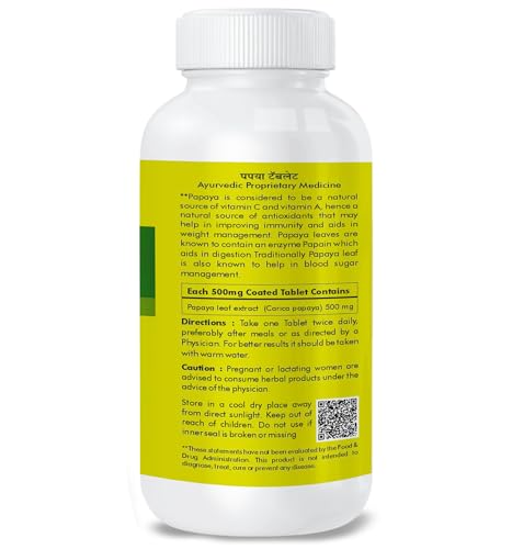 Herbal Hills Carica Papaya tablets - Immunity booster 500mg 60 tablets carica leaf extract.