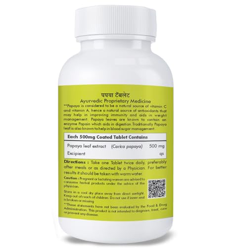 Herbal Hills Carica Papaya tablets - Immunity booster 500mg 60 tablets carica leaf extract.