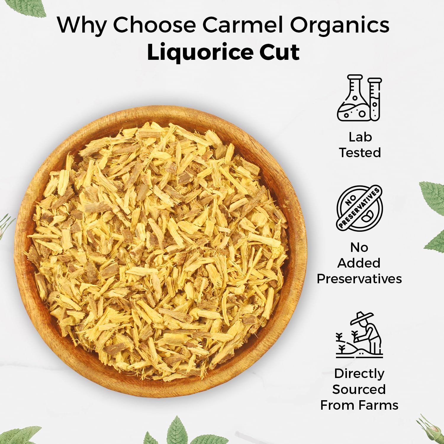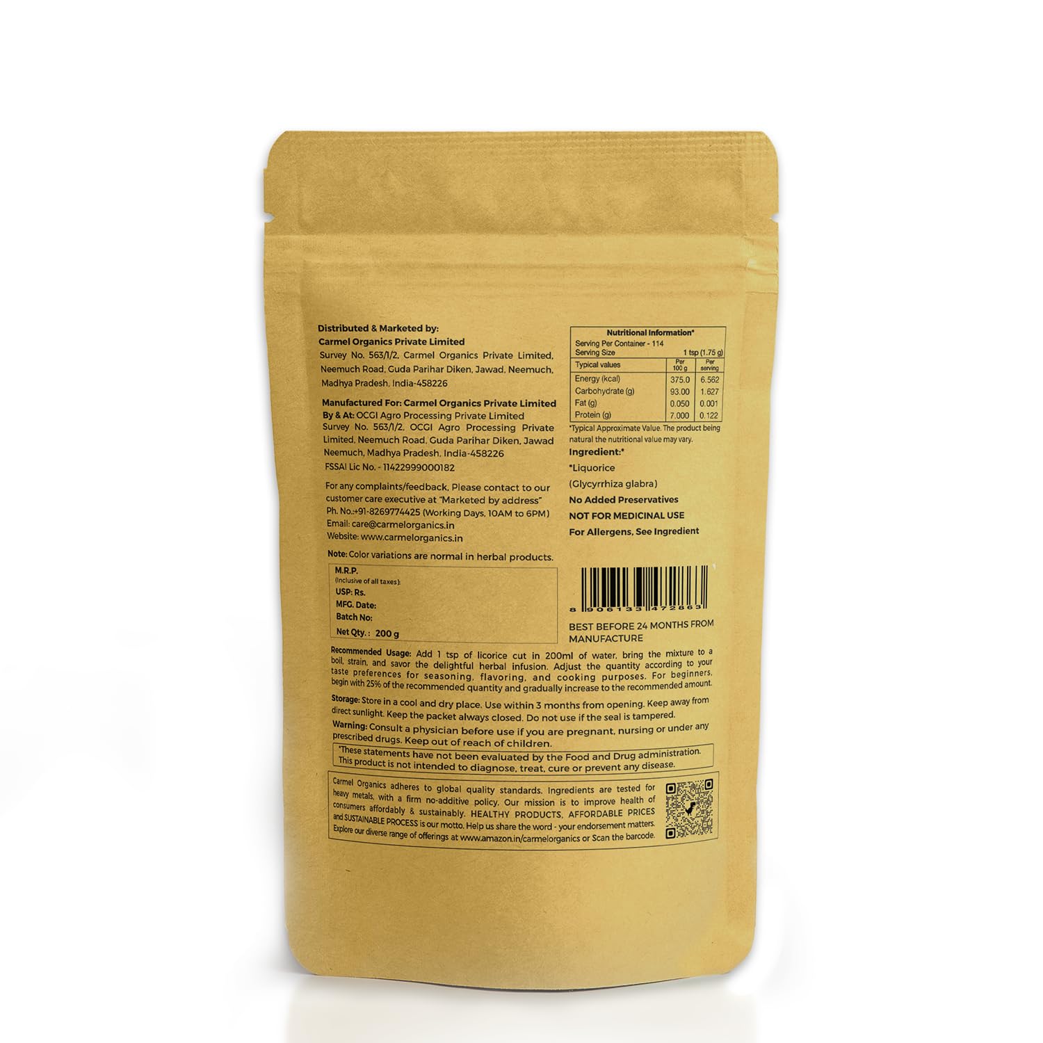 CARMEL ORGANICS Liquorice(Mulethi) Root Cut (200 Grams) | Yashtimadhu for Your HealthSkin and Hair Care | Glycyrrhiza Glabra | Atimadhuram/Athimadhura | No Added Preservatives