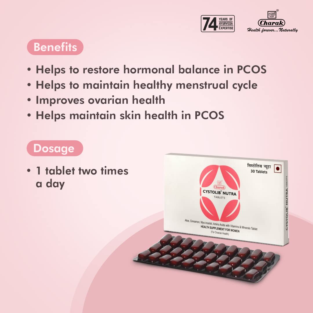 Charak Cystolib Nutra Nutrition Supplement To Restore Hormonal Imbalance In PCOS & PCOD For Women - 30 Tablets