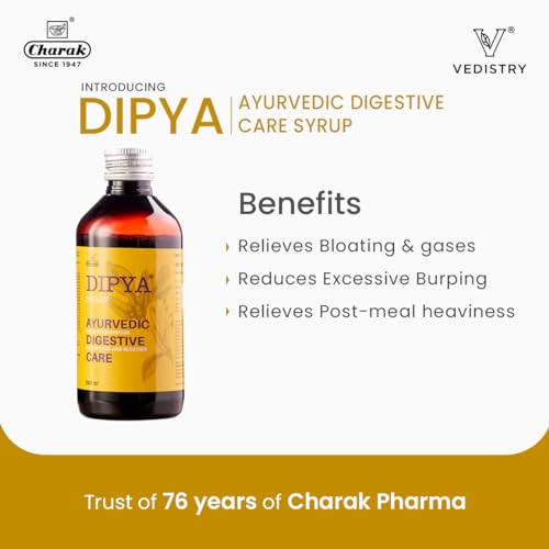 Charak Dipya Syrup - Ayurvedic Digestive Care | For Digestion Acidity Gas and Bloating Ayurvedic Tonic, boosts digestive immunity Stomach Pain - Acidity, Indigestion (450ml -Pack of 1)