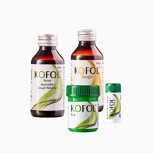 Brand : CharakProduct : Kofol Chewable tablet Kofol Syrup Kofol Gargle Kofol RubKofol Chewable Tablets contain potent Ayurvedic herbs like Yashtimadhu Shunthi Pudina Sattva and more which are anti-inflammatory in nature and offer a cooling effect to effectively heal and soothe your throat. Kofol Syrup contains potent herbs like Shunthi Tulsi Vasa and more which are anti-inflammatory in nature. Kofol Gargle is an herbal non-alcoholic gargle for fast & complete relief from sore throat pain and congestion. Apply Kofol Rub gently over nose throat chest and head as and when required.
