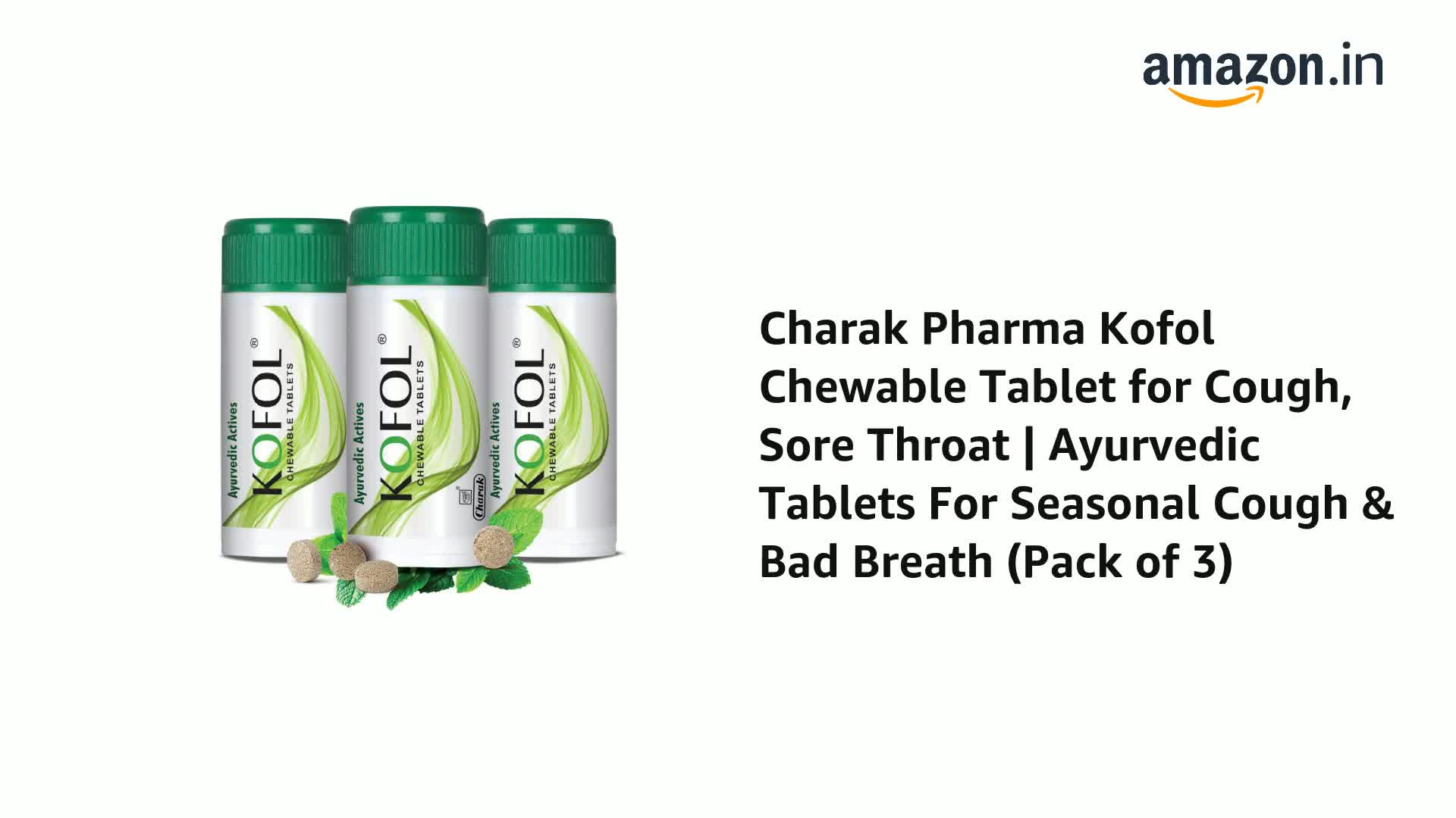 • Faster Relief from Sore Throat! Kofol Chewable Tablets of Charak are Ayurvedic tablets formulated to help in relieve the consumer from all the throat related problems like soreness pain cough etc. One pack of this medicine contains 60 tablets to help you