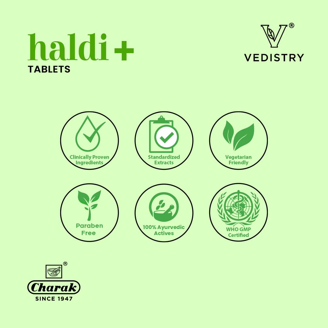 Charak Vedistry Haldi+ Tablets with Piperine for Better Absorption & Relieve Allergies Improve Skin & Joint Health 60 Tablets Each Pack of 1
