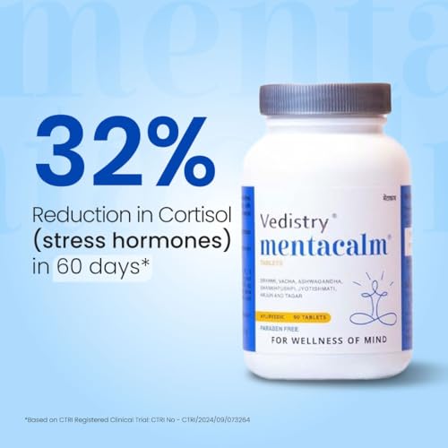 Vedistry Mentacalm tablets | Ayurvedic Support for stress, anxiety & mental calmness| Brahmi, Ashwagandha -90 tablets
